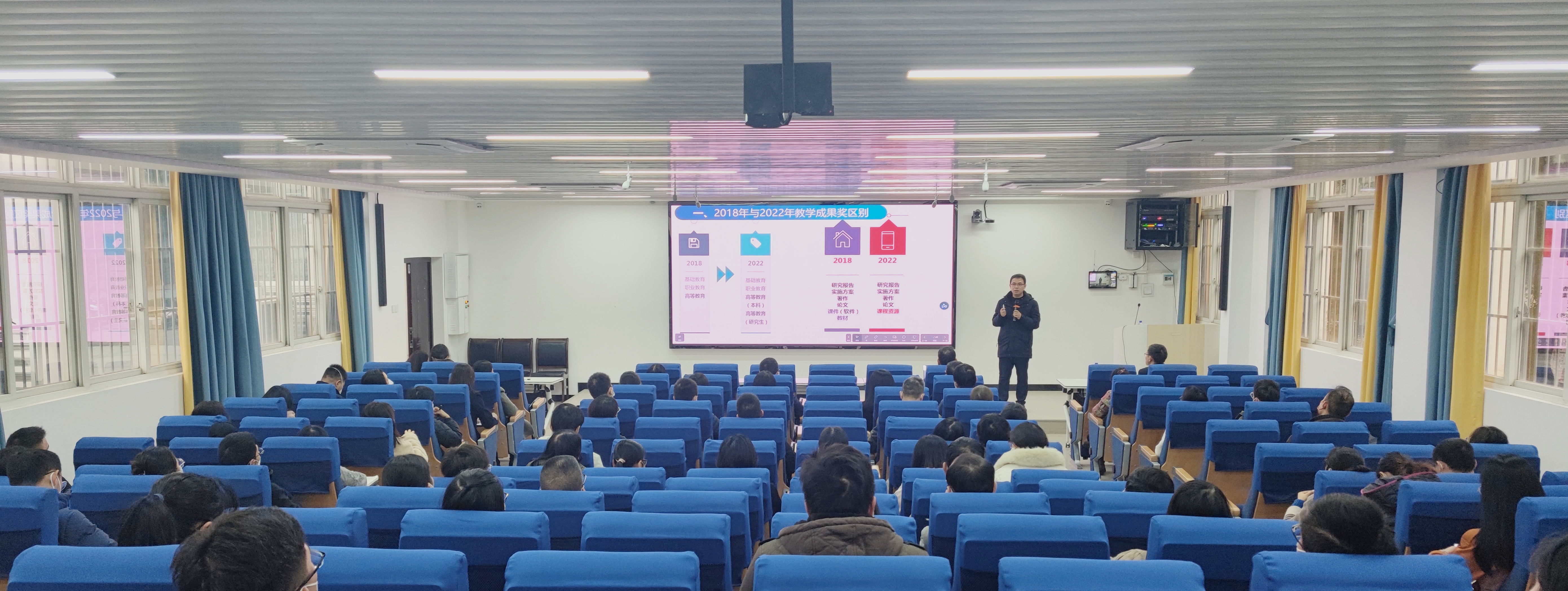 [本网讯]为更好地培育和凝练教育教学成果项目,提升教学成果奖申报质量,1月5日下午,学校刘存香副校长在长堽校区四教1-5为pp电子教师作教学成果奖培育与申报培训指导。培训采用现场授课和线上直播相结合的方式进行,教务处、各二级学院负责人、专任教师共80余人参加了现场培训、120余人线上参训。