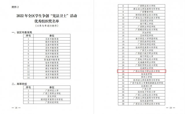 [本网讯]为深入学习贯彻习近平法治思想,由广西壮族自治区教育厅、自治区司法厅主办、广西师范大学承办的第届全国学生“学宪法 讲宪法”广西赛区选拔赛2022811月举行。pp电子近日自治区教育厅公布2022年全区学生“学宪法讲宪法”比赛暨第七届全国学生“学宪法 讲宪法”广西赛区决赛获奖名单,分别荣获高校组“学宪法 讲宪法”活动知识竞赛优秀奖2022年全区学生争创“宪法卫士”活动优秀组织奖。