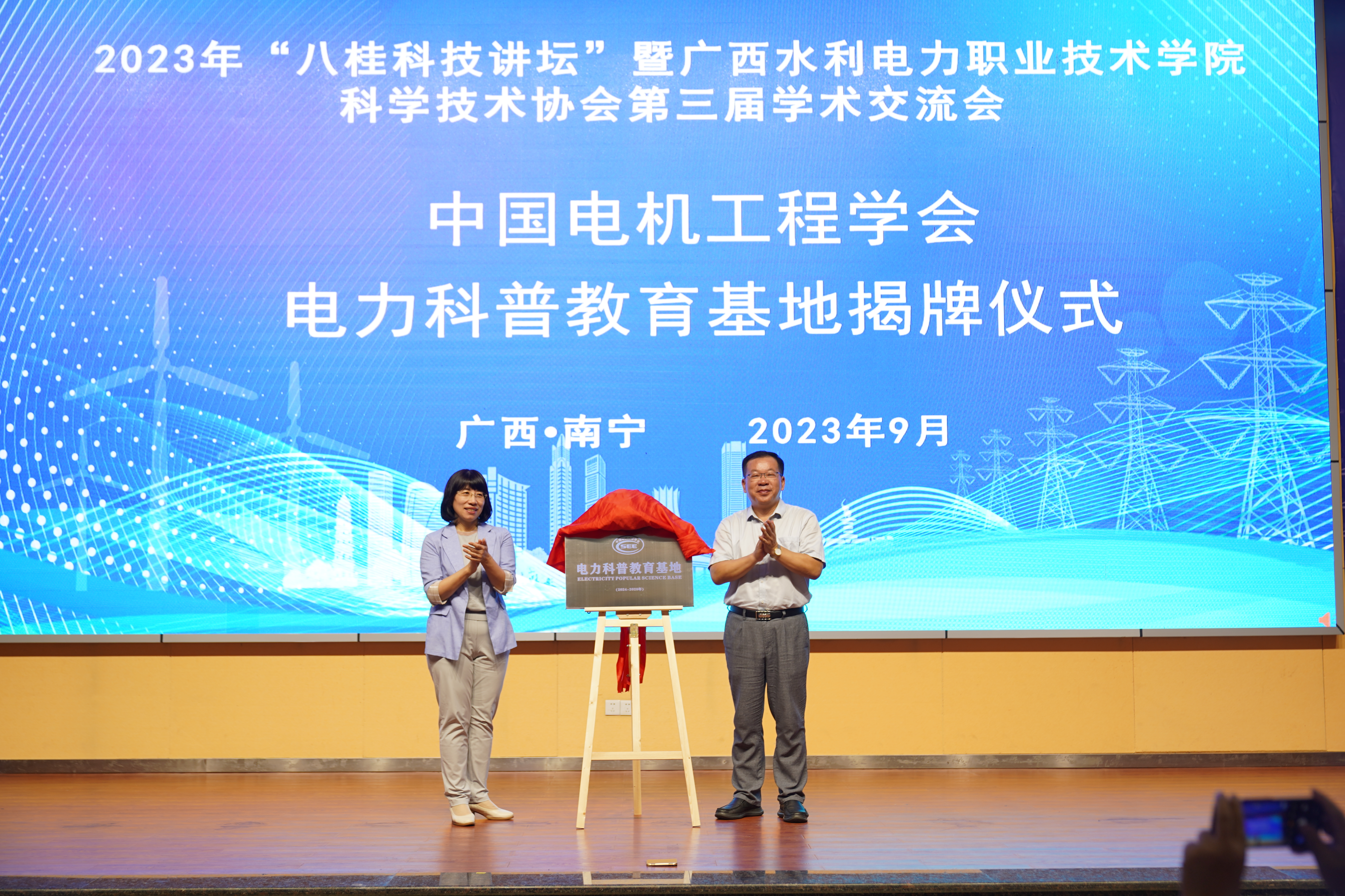 会上,还举行了广西科学技术协会授予的“节水绿色生态”和“TRIZ创新方法”广西科普教育基地,以及中国电机工程学会授予的“电力科普教育基地”揭牌仪式。
