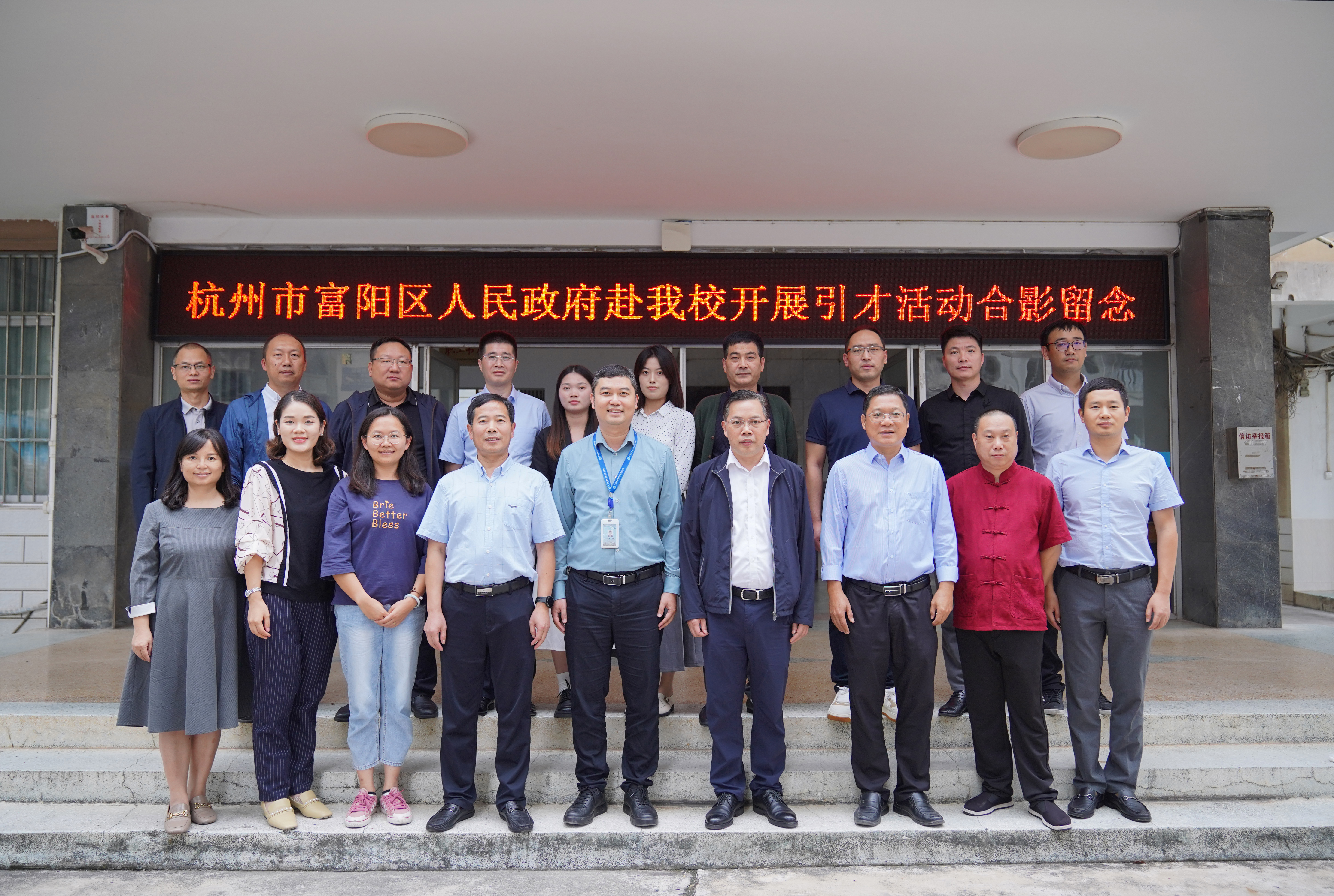 [本网讯]10月12日下午,杭州市富阳区人民政府、杭州市富阳区优秀企业一行人员入校就“政校企”合作相关事宜进行对接洽谈。学校副校长刘存香、招生与就业处处长张翔、教务处副处长赖永明、招生与就业处处长助理黄曦慧以及各二级学院负责人参加座谈会。