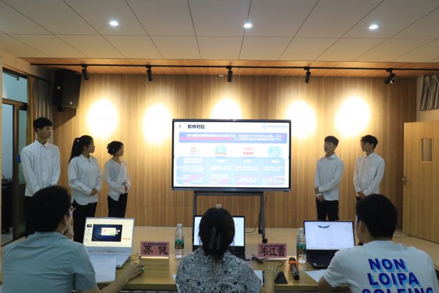 比赛现场,通过参赛队伍提交项目方案策划书和演示项目介绍,在规定时间内完成项目汇报,全体团队成员上台进行答辩,由评委老师针对项目本身存在的问题进行提问,最后针对项目本身做出点评和指导。