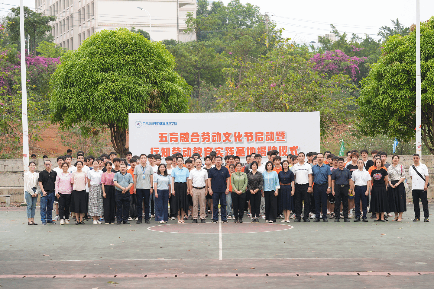 [本网讯]乡村四月闲人少,才了蚕桑又插田。为全面贯彻习近平总书记关于新时代劳动和劳动教育的重要论述,弘扬劳动最光荣、劳动最崇高、劳动最伟大、劳动最美丽的精神,在学校形成尊重劳动、热爱劳动、崇尚劳动的浓厚氛围。4月29日上午,由通识教育学院主办的学校五育融合劳动文化节启动暨行知劳动教育实践基地揭牌仪式在里建校区行知劳动基地举行。学校校长李林、党委宣传部、党委学生工作部、后勤管理处、团委、各二级学院相关职能负责人及师生代表约130人参加本次仪式。