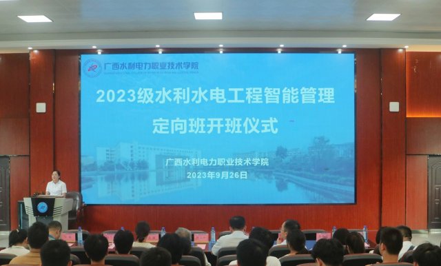 [本网讯]9月26日下午,2023级广西基层水利人才定向班开班仪式在学校里建校区教学楼二楼学术报告厅举行。学校校长李林、副校长蒋文沛以及各部门主要负责人、值周中层干部、水利工程学院领导、教师代表、辅导员和2023级定向班全体同学参加了本次开班仪式。开班仪式由水利工程学院党总支书记班兰美主持。