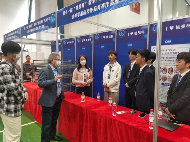 期间,蒋文沛副校长深入参赛作品展区与pp电子师生交流并指导作品参赛,他与团队成员就项目内容进行了深入交流,并从项目的可行性、创新性给出了指导意见。他希望广大师生以此次“挑战杯”竞赛为契机,努力学习科学知识和科学方法,培养科学精神和科学态度,勇攀科学高峰,不断提高科技创新能力和科研成果质量,为推进学校发展建设做出新的更大贡献。