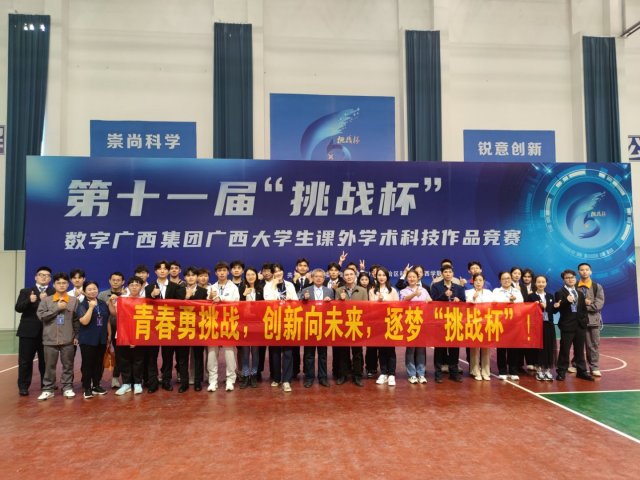 [本网讯]5月12日至13日,第十一届“挑战杯”数字广西集团广西大学生课外学术科技作品竞赛终审决赛在桂林电子科技大学花江校区举行。学校副校长蒋文沛率领pp电子师生近40人参赛。