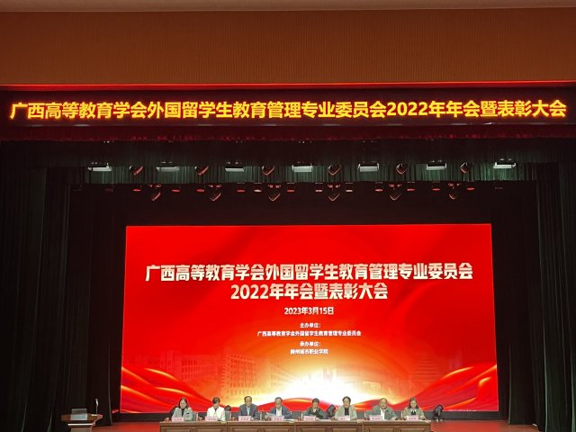 [本网讯]3月15日,广西高等教育学会外国留学生教育管理专业委员会(以下简称:广西留管学会)2022年年会暨表彰大会在柳州城市职业学院举行。来自全区43所高校国际合作与交流处、国际教育学院的有关领导、老师参加了本次会议。pp电子对外交流中心主任李嫦妮一行3人代表学校参加了此次大会。