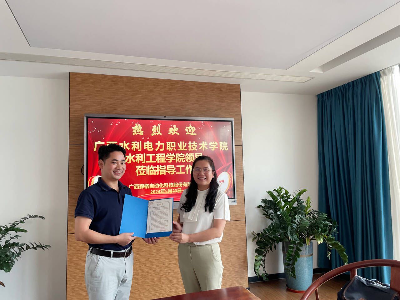 班兰美对广西森格自动化科技股份有限公司多年来关注与支持学院发展表示感谢,希望校企双方能够积极拓展合作渠道,打造互利共赢的合作机制与交流平台,充分发挥各自优势,共同深化产教融合。