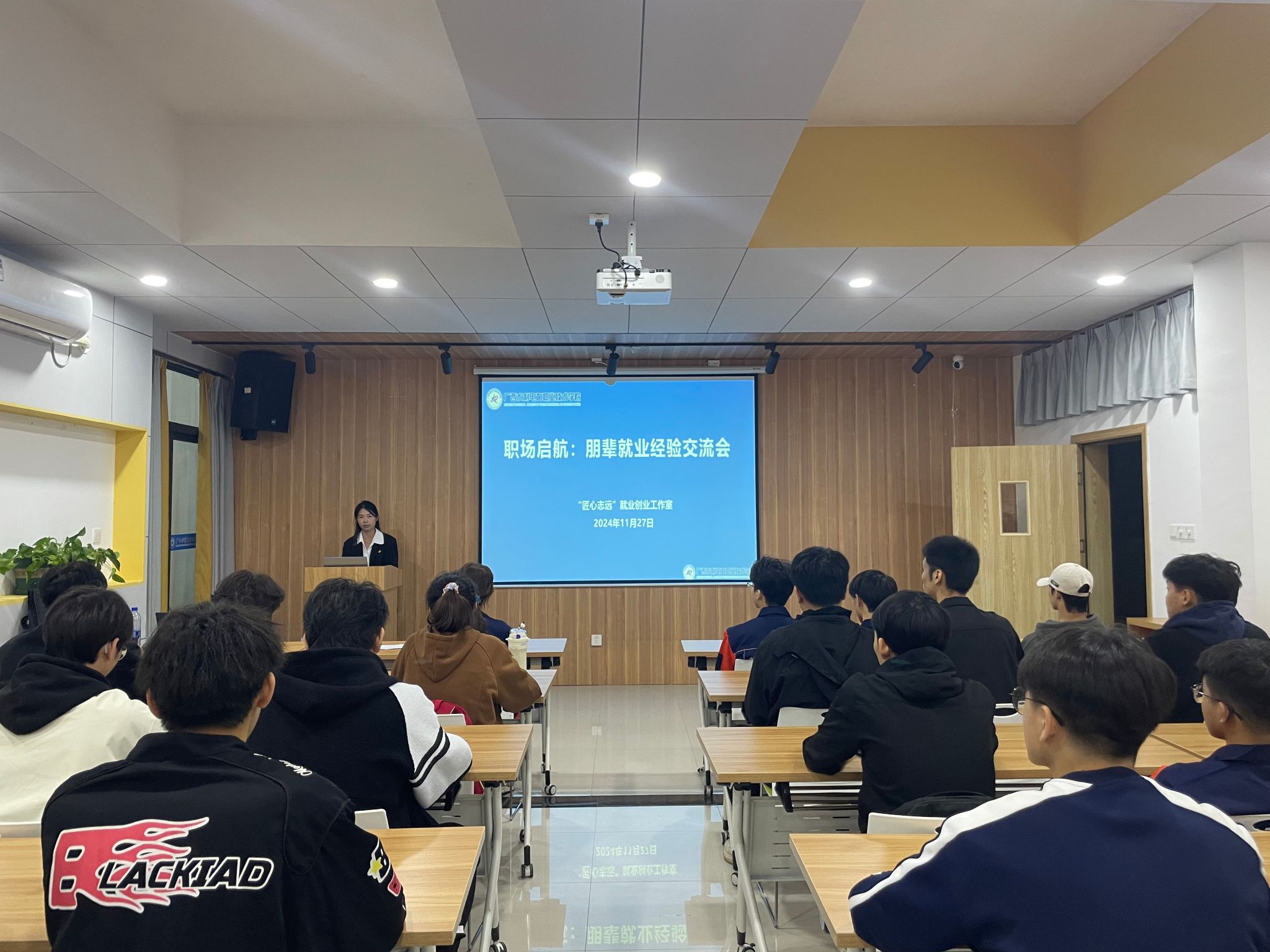 [本网讯]为充分发挥优秀党员的引领和示范作用,进一步加强学生的思想引领和成长指导,11月27日,机电工程学院学生党支部在里建校区“和园”一站式学生社区多功能报告厅举办了一场以“朋辈引航 慧聚成长”为主题的分享会。分享会由学生党支部书记、“匠心志远”就业创业工作室负责人肖芬主持,学院师生党员、入党积极分子等80余人参加。