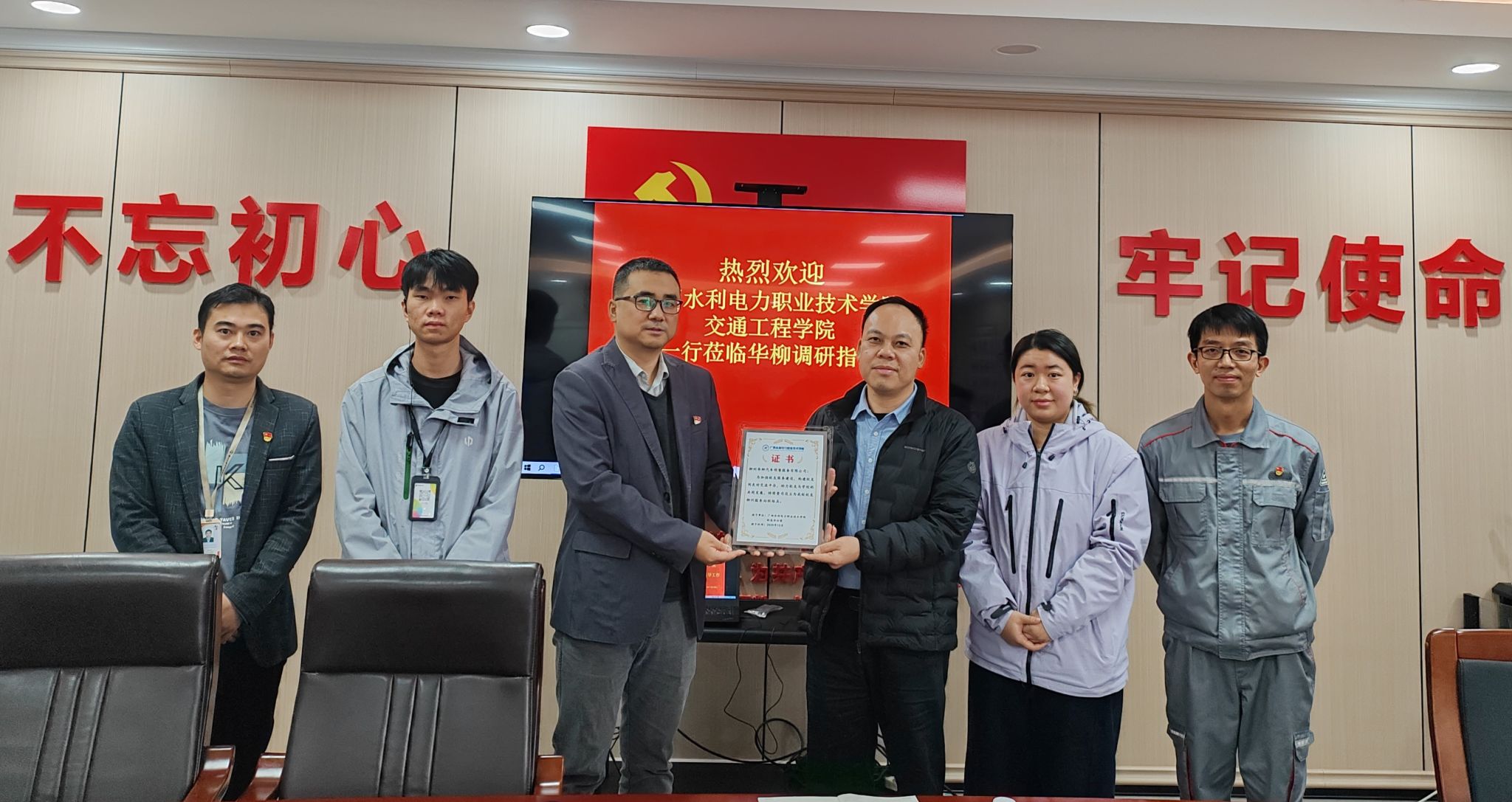 16日上午,调研小组首站走访柳州华柳汽车销售服务有限公司。公司卢景茂总经理等领导热情接待,并详细介绍公司发展概况、品牌经营布局及人才需求标准,校企双方围绕企业岗位能力需求、实习就业合作、技能竞赛参赛项目等议题展开深度交流。调研小组听取了优秀校友——公司售后服务站站长唐炳善的成长汇报。学校授予该公司“校友柳州服务站联络点”证书,进一步完善校友联络平台。