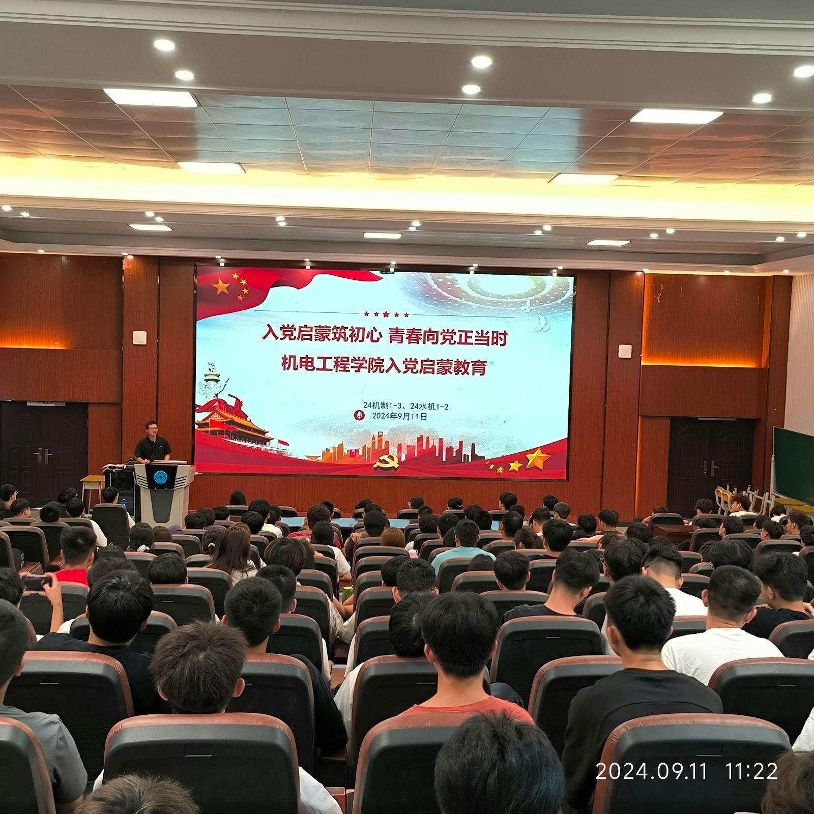 为深入学习贯彻习近平新时代中国特色社会主义思想和党的二十届三中全会精神,加强新生对党的认识,提高思想觉悟和党性修养,引领新生扣好入党“第一粒扣子”,9月11-13日,机电工程学院学生党支部全体支委及辅导员分多场次深入各班级为2024级全体新生开展了入党启蒙教育。