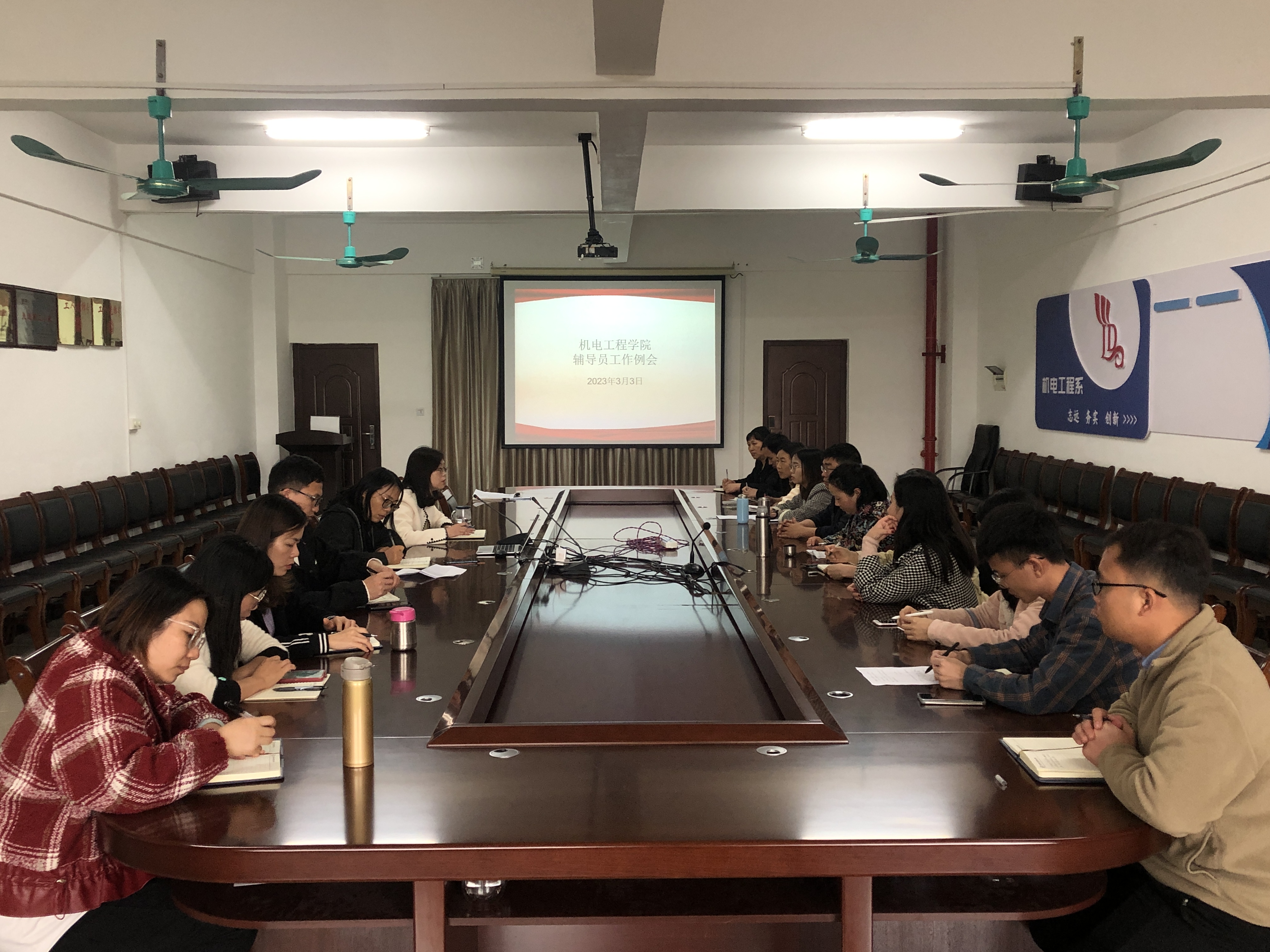 [本网讯]为夯实新学期学生管理各项工作,进一步加强学生安全教育,认真落实班会制度,机电工程学院于3月3日下午召开了辅导员工作例会,学院党总支书记杨青以及全体专兼职辅导员参加了会议,会议由杨青书记主持。