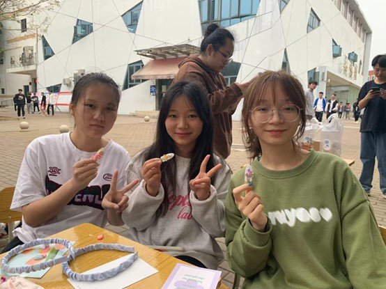 本次活动于里建校区知味轩门口公交站旁设置“祝福换发卡点”,同学们在便签纸上写下对女老师们妇女节的祝福,且落款自己来自哪个学院,即可进行DIY制作发卡。随着活动的开展,我们看到各种对女老师的美好祝福跃然纸上,从中我们感受到了同学们积极阳光向上的心态以及对老师们的美好祝福。