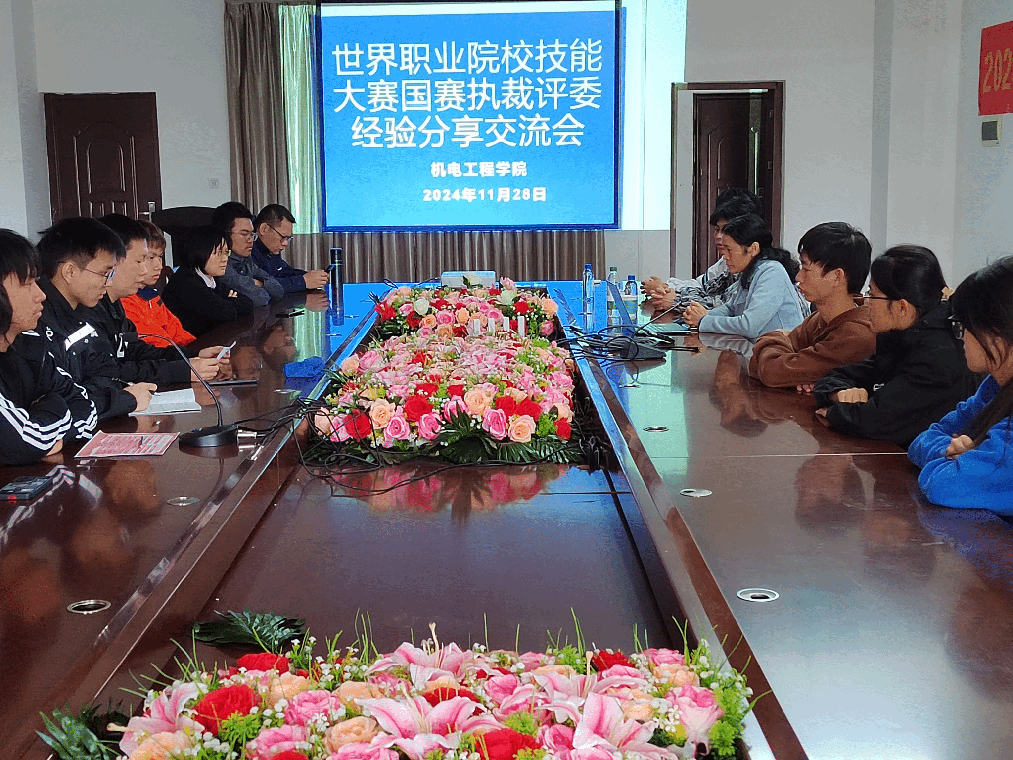 [本网讯]11月28日下午,机电工程学院在机电实训楼三楼会议室召开2024年世界职业院校技能大赛经验分享会。此次会议旨在让更多的师生深入了解大赛的实际情况,为明年学院师生备战区赛提供宝贵的经验和指导。参与国赛执裁的胡华丽、韩雪松老师及备赛区赛的数控、机电一体化赛项团队指导老师及学生代表参加了会议。