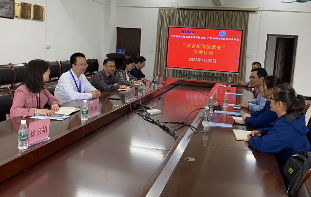 [本网讯]为持续推进“访企拓岗促就业”专项行动,切实做好2023届毕业生就业工作,4月25日上午,学校副校长周涛携机电工程学院陆尚平院长及相关人员在里建校区机电实训楼三楼会议室,与广西徐沃工程机械设备有限公司开展校企合作交流座谈。