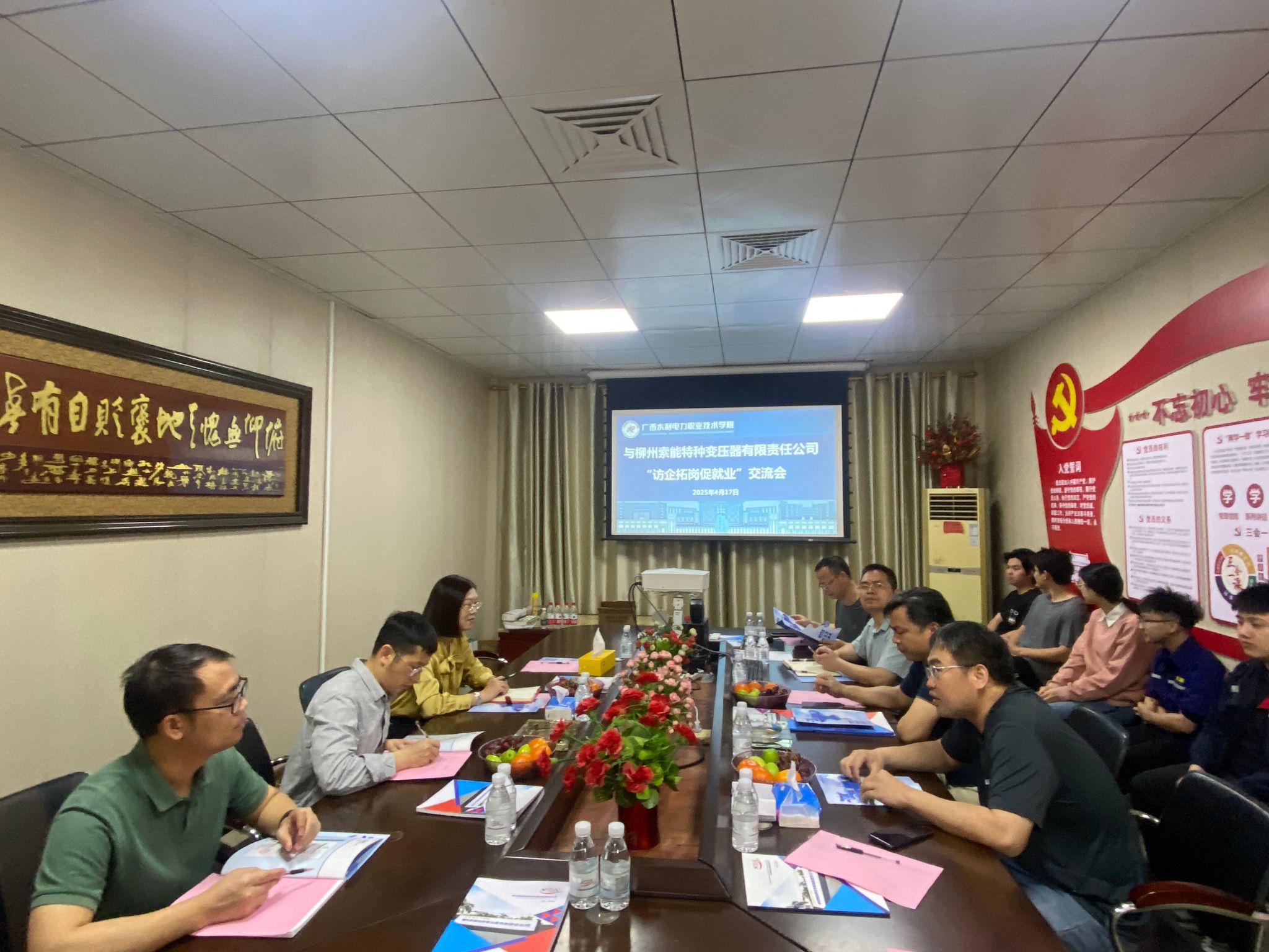 [本网讯]4月16-17日,机电工程学院党总支书记杨青一行4人赴柳州柳城县龙江水电有限责任公司、柳州索能特种变压器有限责任公司、广西索能电气科技集团有限公司、广西恒电电气有限公司等四家企业开展访企拓岗促就业行动,与企业相关领导就校企合作、人才培养、学生实习就业等方面进行座谈交流。