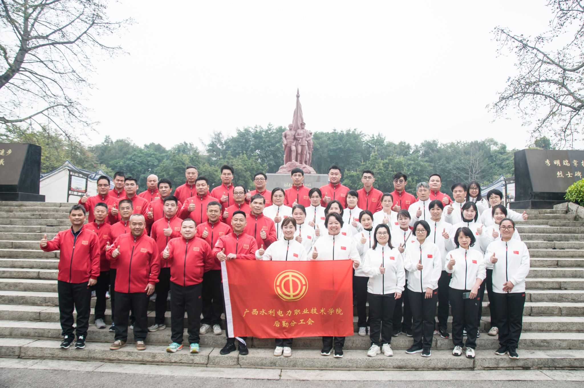 会后,后勤基建党总支、后勤分工会全体成员到南湖公园开展“强体魄 聚合力 展风采”主题党建带工建活动。全体人员来到李明瑞、韦拔群等革命烈士纪念碑园,进一步了解革命烈士的战斗历程,缅怀英烈,寄托哀思,激发爱党爱国热情。随后,后勤分工会开展了健身走竞赛及“团队贪吃蛇”“一圈到底”“摩斯密码”等团建趣味活动,通过团建活动,有效提升了团队凝聚力和合作精神,大家既锻炼了身体,又增进了彼此之间的了解和友谊。大家纷纷表示,新的一年将以更加饱满的热情和积极的态度投入到工作中,共同为学校的发展贡献力量。(潘桂芳、罗文呈/文 方汉葵、梁竣杰/图)