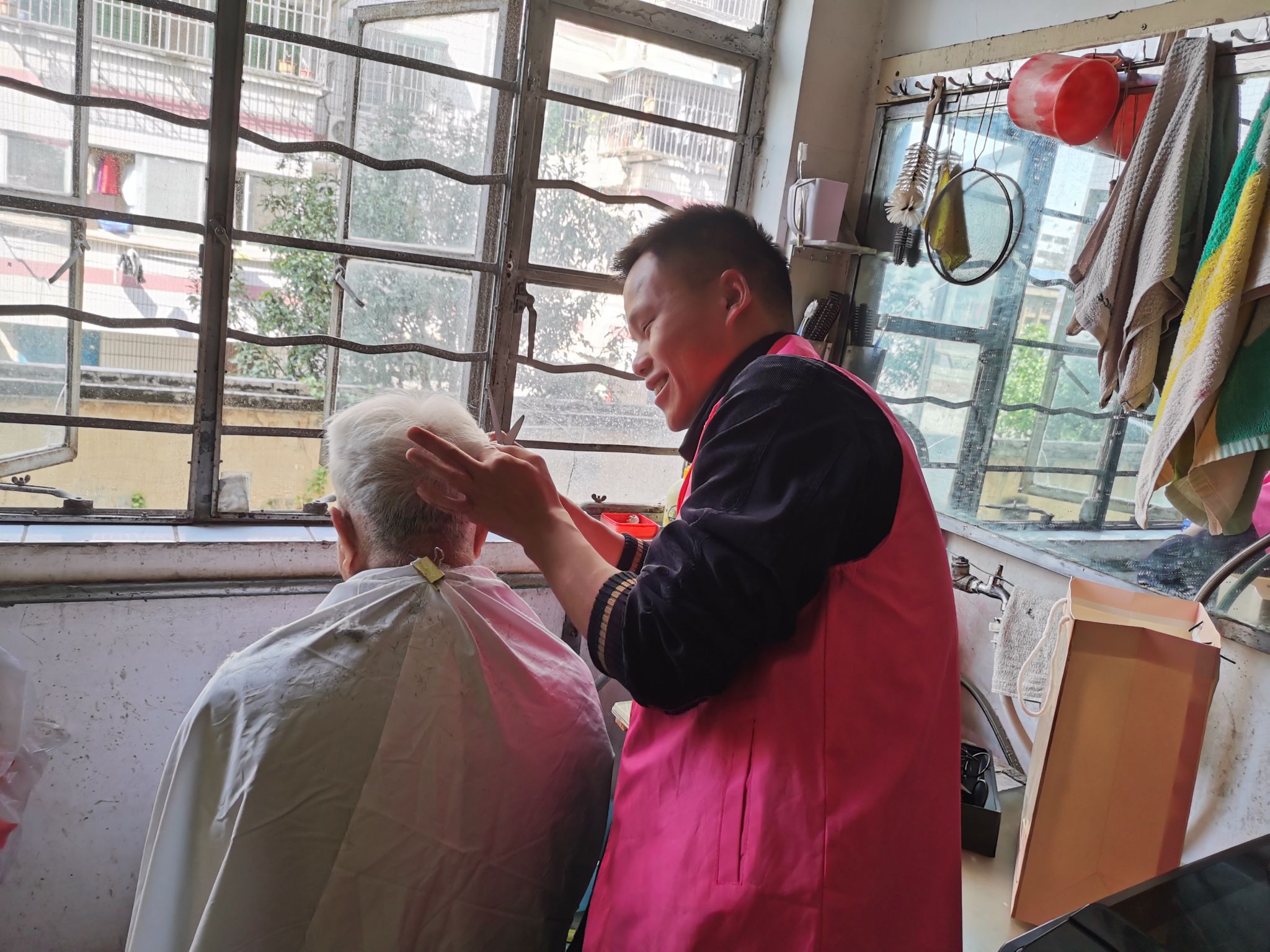 此次活动在退休教职工社区、一站式服务中心举行,活动内容主要为退休教职工和同学们提供义务理发、室内卫生清洁等志愿服务。活动开始前,“满天星”志愿服务队员先就此次志愿活动的服务对象、服务内容进行了充分的了解。下午三点,志愿者们分为四个小组,一起来到学校退休教职工社区,开始了此次志愿活动。青年志愿者们充满干劲儿为师生干实事,活动过程中,志愿者们分工明确、有条不紊、积极热心,本着为师生服务的志愿精神,认真负责。志愿者们在为退休职工理发的同时,与老人们话家常、聊天交流,聆听他们的需求和故事,让他们感受到尊敬与温暖。