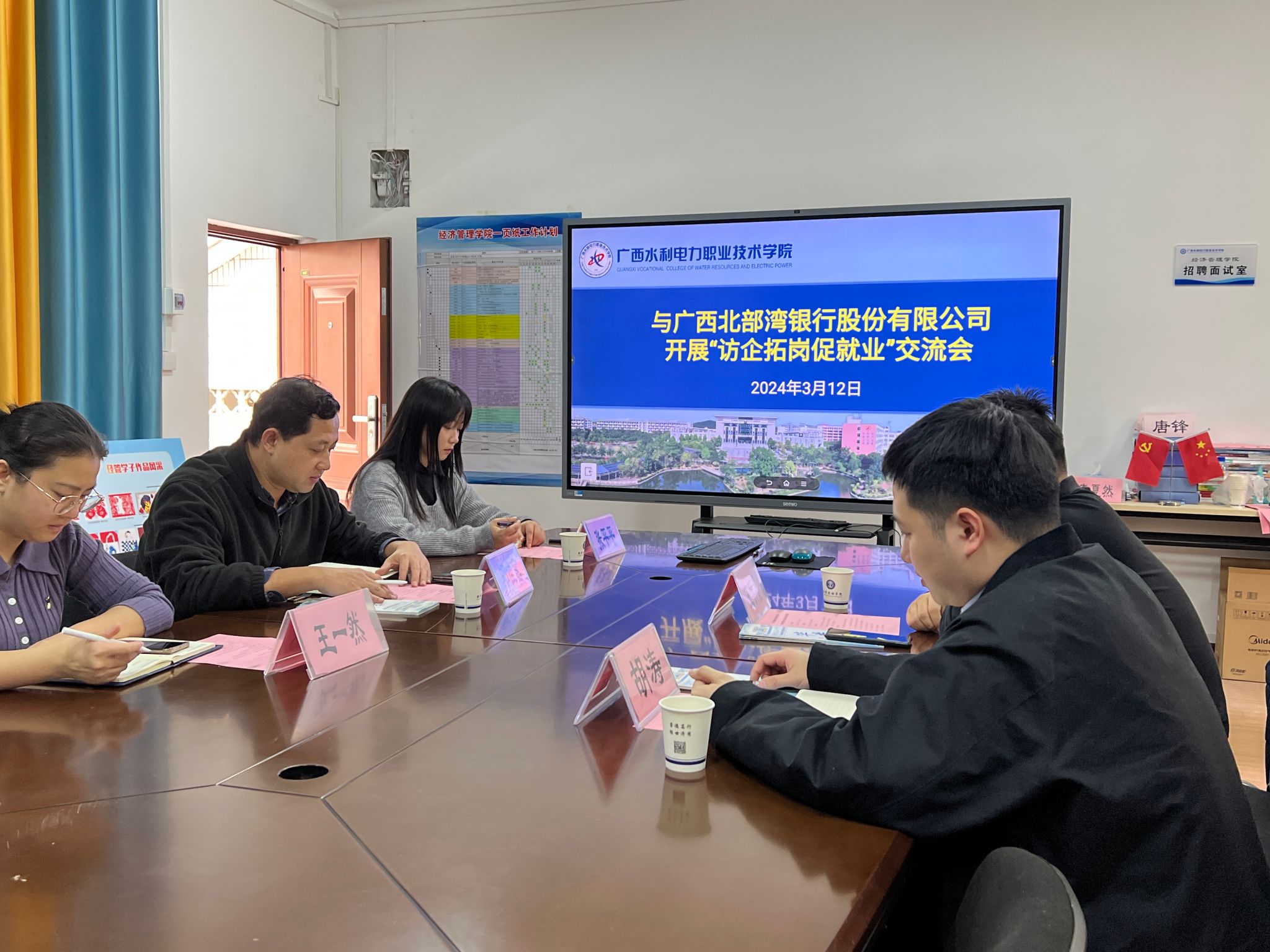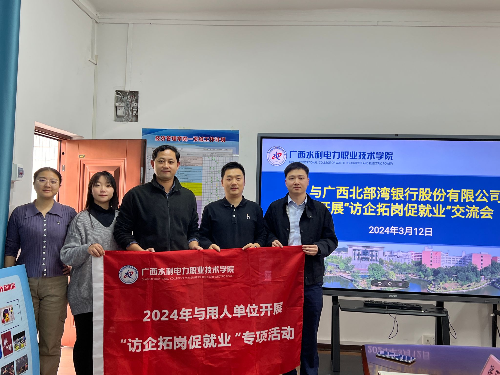 [本网讯]为毕业生提供更多高质量的就业岗位,加大校企合作力度,3月12日,经济管理学院党总支书记邓佳富、就业干事张平平以及2024届毕业生辅导员与广西北部湾银行股份有限公司开展访企拓岗交流活动。