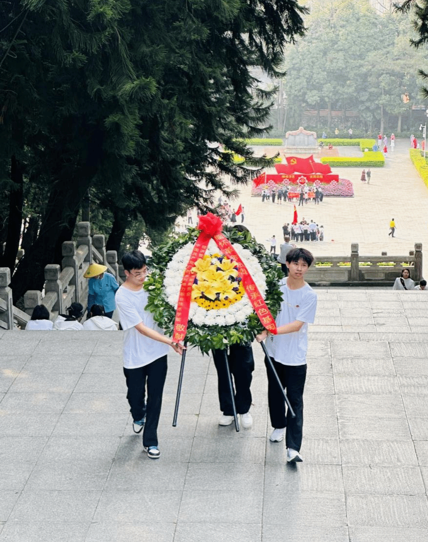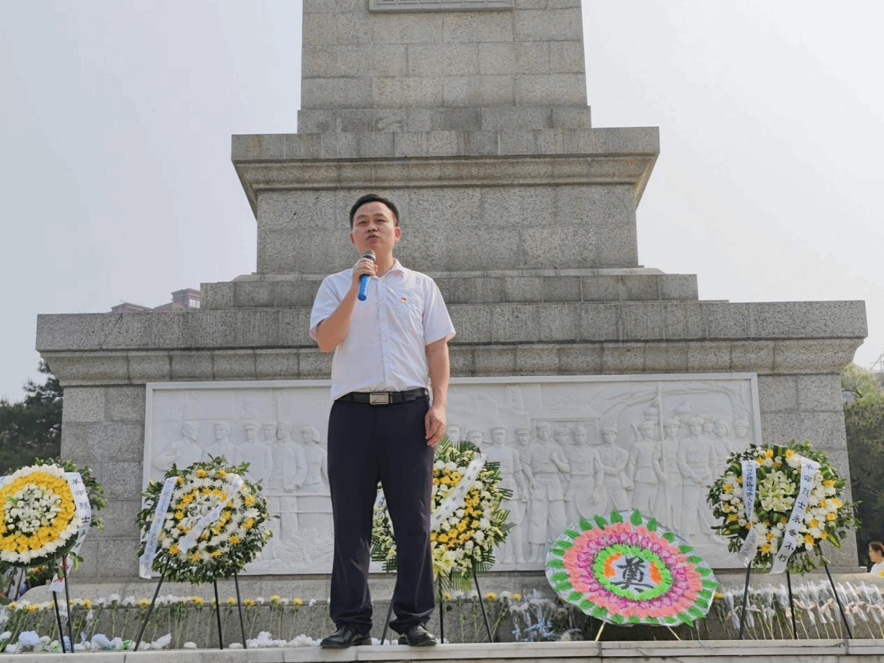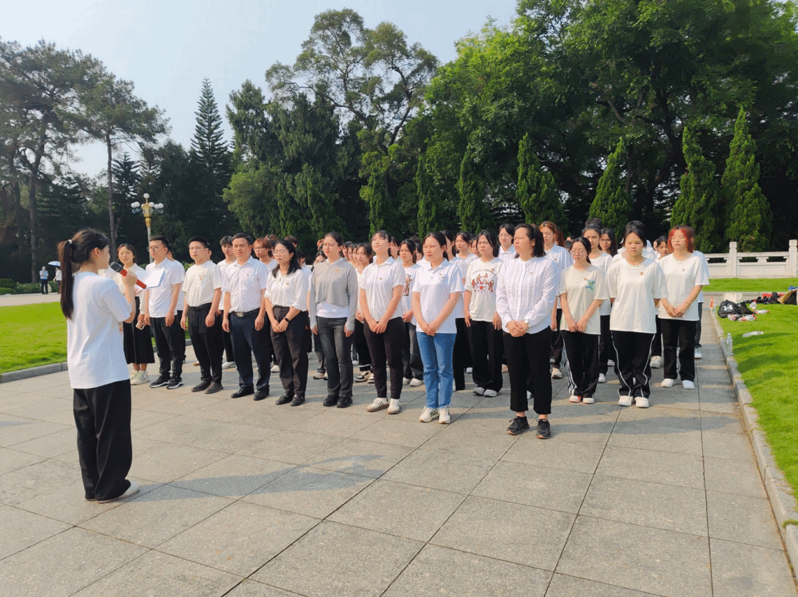 踏入人民公园,庄严的革命烈士纪念碑巍峨耸立,全体人员有序排列,站在纪念碑前,气氛庄重而肃穆。大家静默站立,默哀致敬,敬献花圈,以此表达对革命先烈的深切缅怀与崇高敬意。