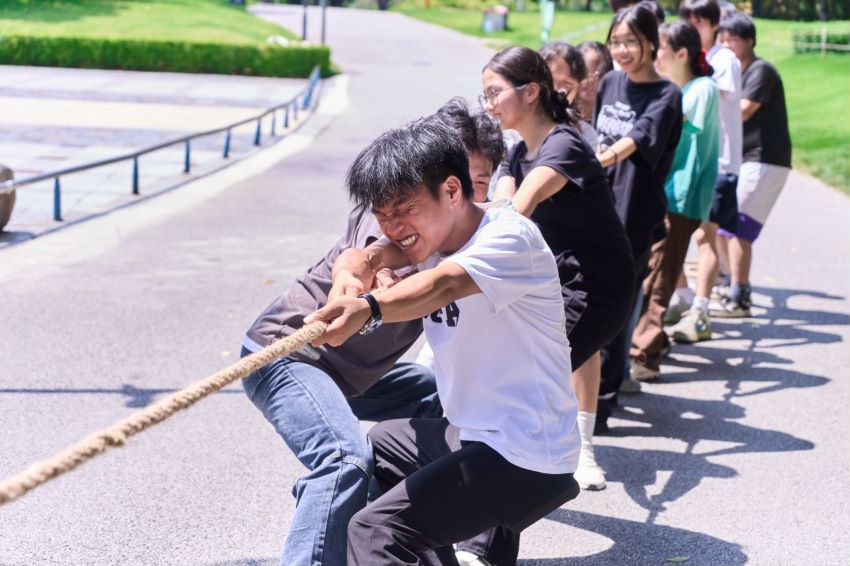 活动中,除了传统的参观学习外,还精心设计了红色主题拓展游戏,将理论学习与实践体验紧密结合。通过互动游戏和团队协作,同学们在轻松愉快的氛围中深化了对红色精神的理解,进一步提升了个人能力与团队协作能力。这种“理论学习—实践体验—学习领悟—提升能力”的体验式培训模式,让学生的心灵得到了深刻的洗礼,爱国情怀油然而生。