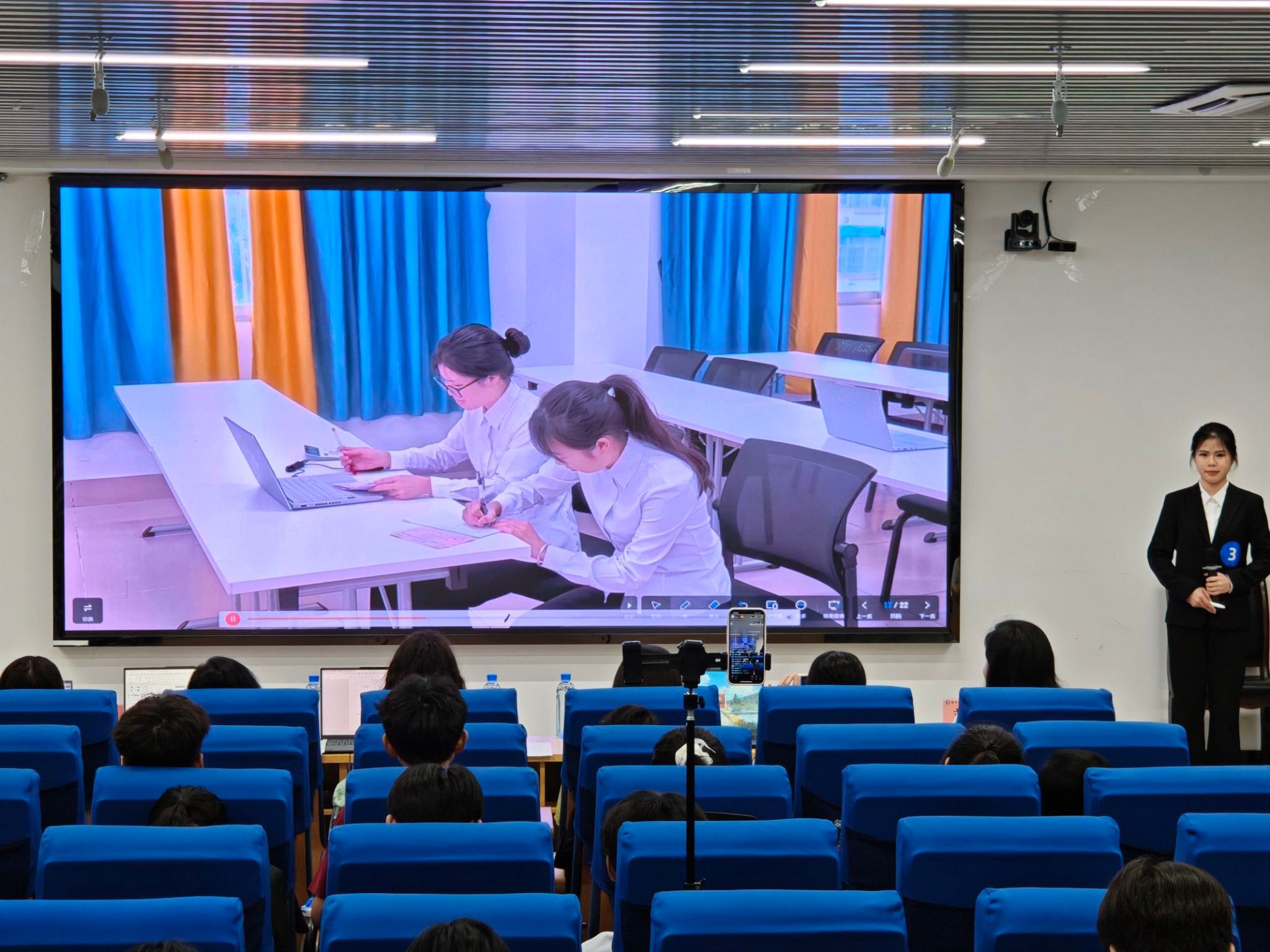 班兰美为比赛作总结致辞。她强调,“依标准・说职业”活动是贯彻落实职业教育改革精神、深化产教融合、推动“三教”改革的重要举措,也是加强专业建设、提升人才培养质量的重要实践。通过比赛,同学们不仅巩固了专业知识,提升了实践技能,还增强了团队合作意识和创新思维能力,为未来的职业发展积累了宝贵的经验。希望同学们今后继续保持学习的热情和进取的精神,努力学习,勇于实践,为实现自己的人生理想而努力奋斗!