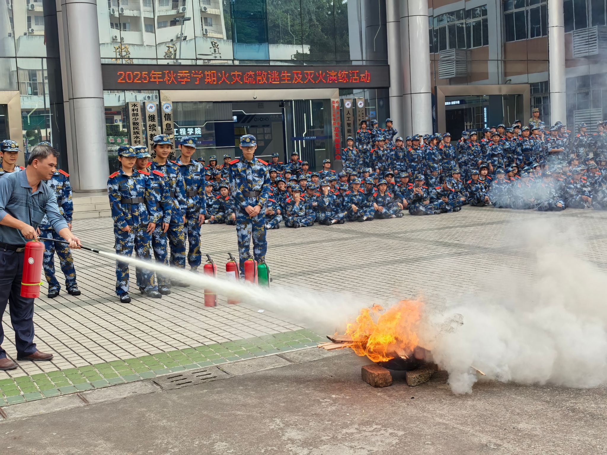[本网讯]11月17日下午,经济管理学院联合信息工程学院、后勤管理处在第四教学楼前成功举行消防应急疏散及灭火演练活动。后勤管理处(保卫处)副处长肖翔、经济管理学院党总支书记班兰美、后勤管理处安全生产科科长覃向春、保卫处相关老师、辅导员、2025级学生等近千名师生参加本次活动。