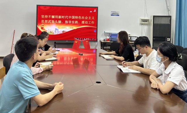 [本网讯]为牢牢把握“学思想、强党性、重实践、建新功”的总要求,深入开展学习贯彻习近平新时代中国特色社会主义思想主题教育,6月13日经济管理学院教工党支部书记王晓迪在长堽校区经管会议室讲授主题党课,教工党支部全体党员参与学习。