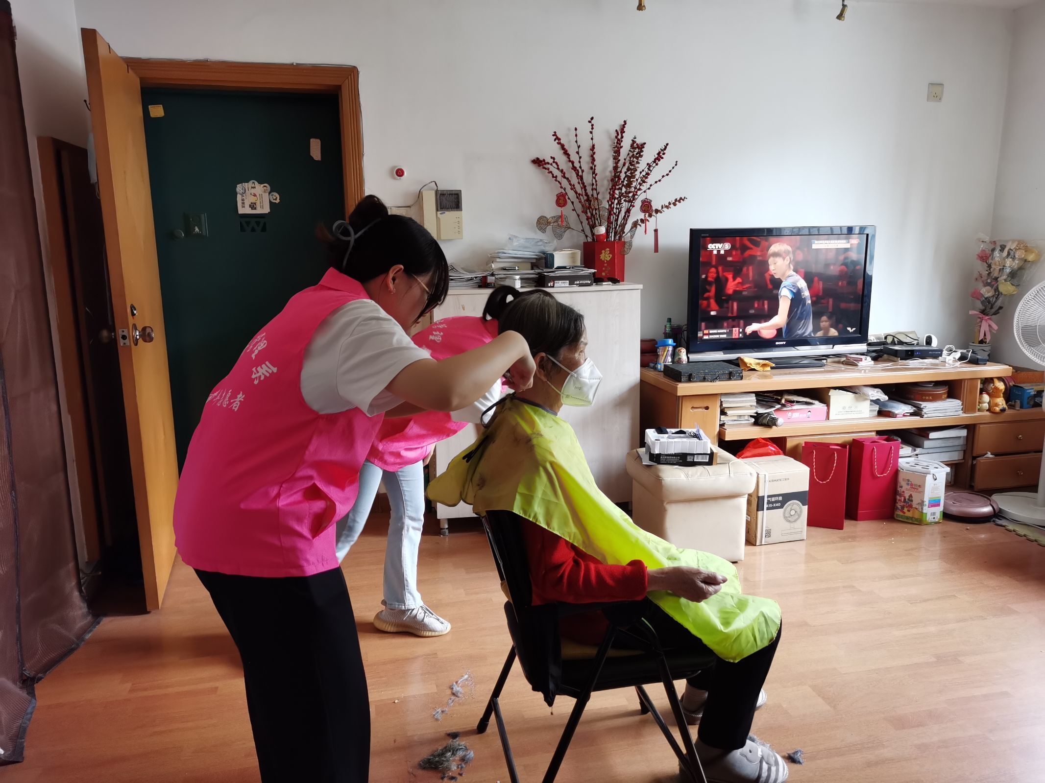 志愿者为退休职工义务理发