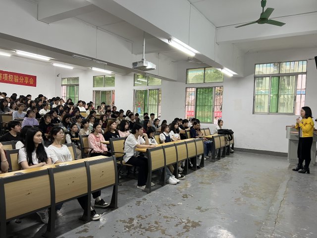 在分享环节,由2023年广西职业院校技能大赛财会类赛项获奖的同学依次在台上发言,讲述了自己的参赛体会。他们表示,参加竞赛是一个先苦后甜的过程。备赛过程中,不仅要放弃个人时间,忍受“孤舟蓑笠翁,独钓寒江雪”的孤独,还会受到焦虑情绪的困扰。但是,当自己取得了优异的成绩后,便有一种“守得云开见月明,静待花开终有时”的豁然开朗。在收获与成长面前,所有的付出都是值得的。同时,获奖学生也分享了自己学习的方法、经验,以身作则,为大一学生树立良好的榜样。