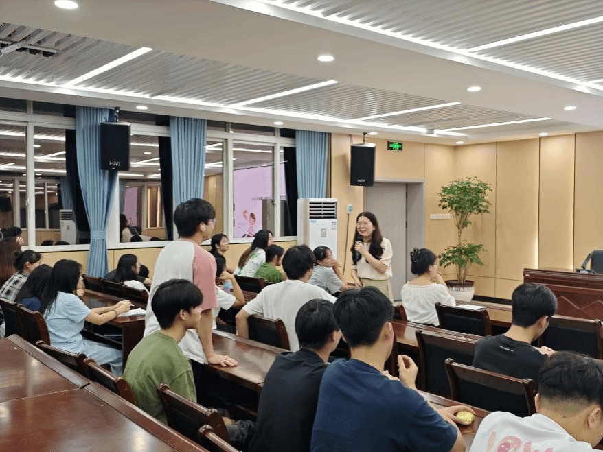 随后,班兰美结合 “幸福 PERMA 模型” 指出,该模型不仅是提升幸福感的重要工具,更是毕业生完成校园到职场过渡、促进个人成长、强化职场人际、实现职业成功的有效路径。为加深学生理解,她分享职场新人应用该理论的成功案例,并组织互动讨论,引导毕业生结合自身实际,探讨未来实习与工作中践行 PERMA 理论的方法。