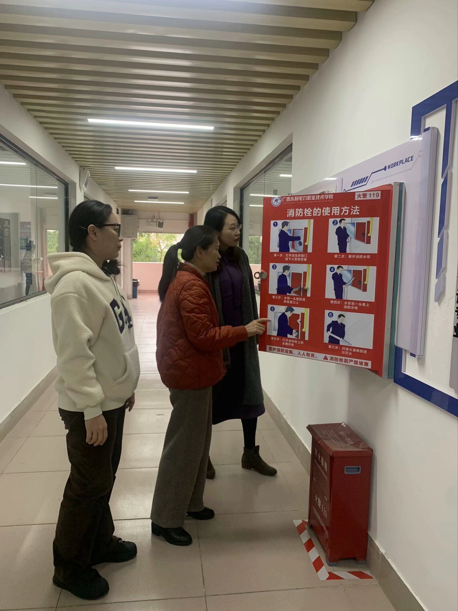 检查组一行深入学院机房、茶艺室、形体室、物流实训室等重点实训及教学场所,对消防安全、用电规范、设备安全、环境卫生以及相关安全制度的落实情况进行了全面细致的排查。在检查过程中,检查组重点查看了机房线路布局与设备散热、茶艺室用电及用水安全、形体室设施稳固性与应急通道畅通情况、物流实训室器械存放与操作规范等关键环节。