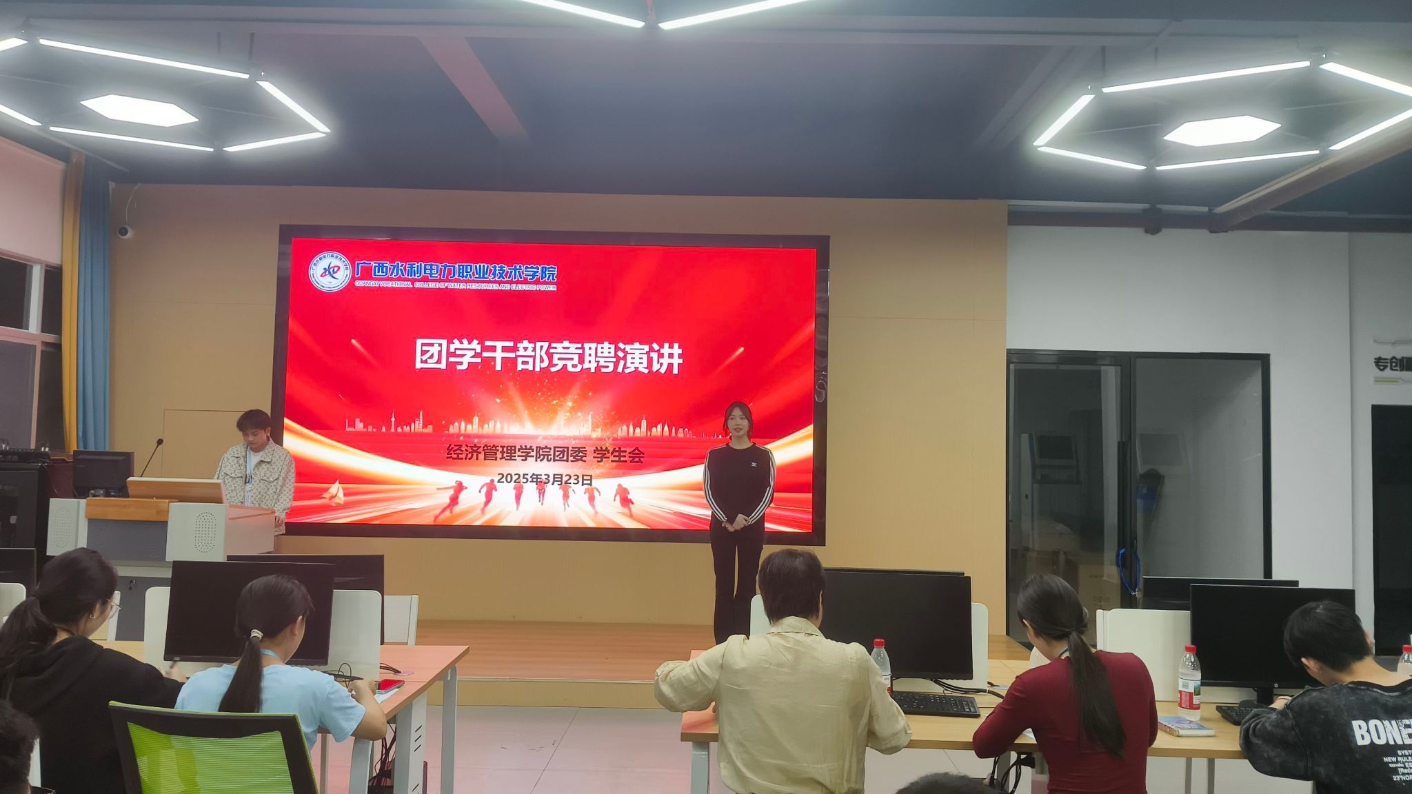 3月23日17:30,经济管理学院团委学生会团学干部竞聘演讲在经管实训楼1-2顺利举行。