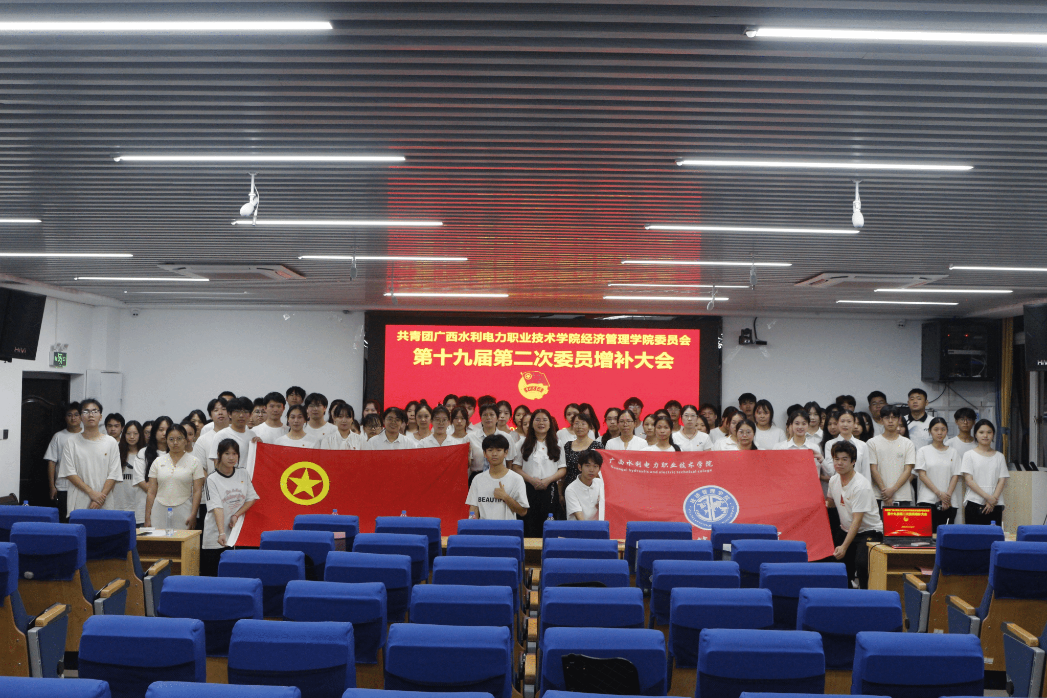 6 月 26 日晚,经济管理学院第十九届团委第二次委员增补大会在学校报告厅庄重举行。学院党总支书记班兰美、副院长罗成昭、校团委老师段喜艳、学院团委书记冯文及刘璐、李夏然等教师代表,与 120 名学生代表共同见证这一组织建设重要时刻。