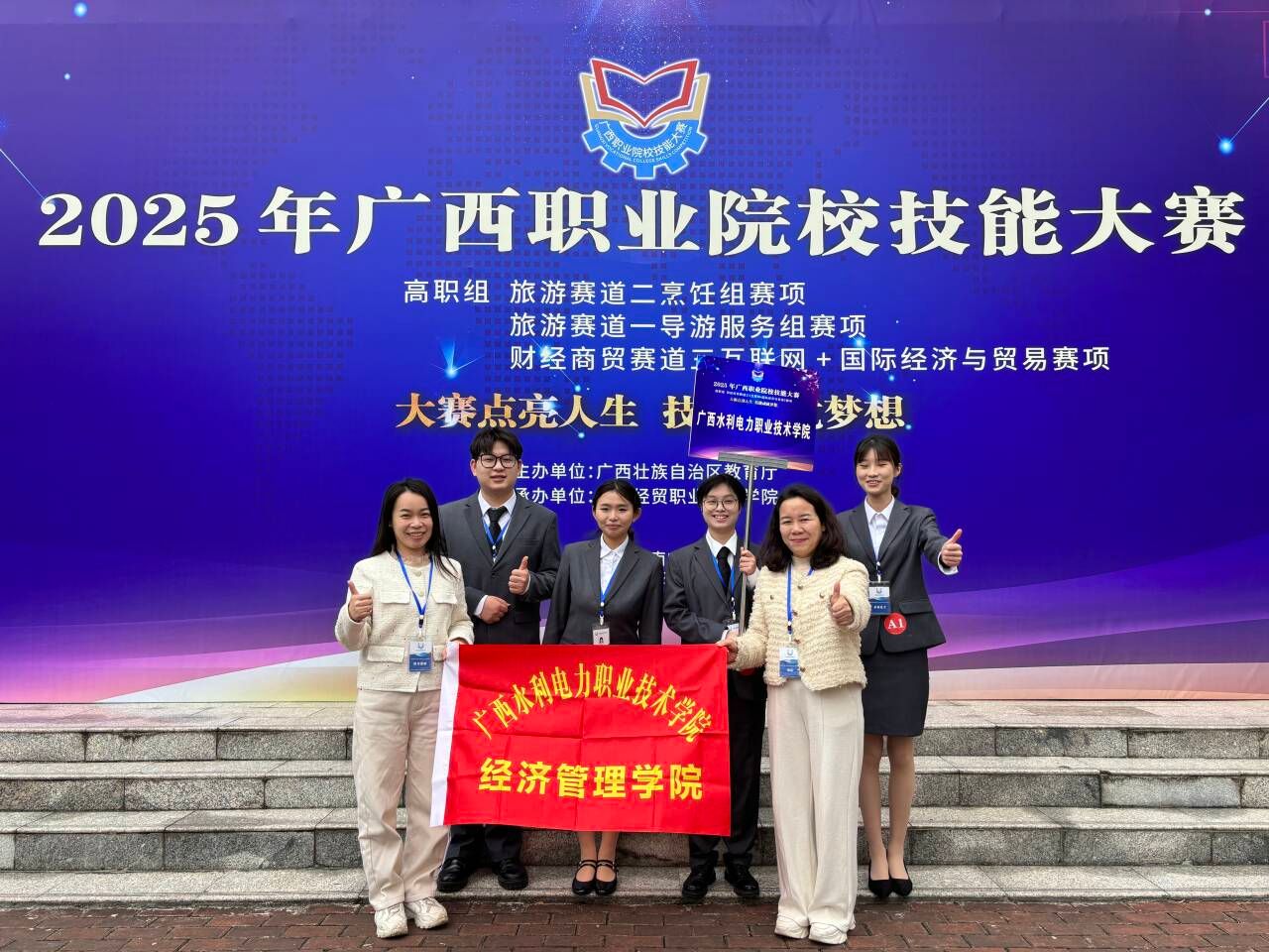 [本网讯]在刚刚公布的2025年广西职业院校技能大赛获奖名单中,学校经济管理学院参赛团队凭借扎实的专业技能、出色的团队协作和勇于创新的精神,斩获1金5银7铜的良好成绩,为学校赢得了荣誉。