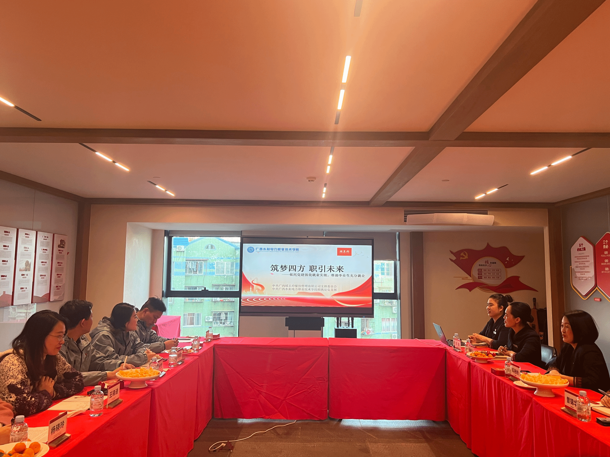 [本网讯]1月16日下午,学校招就处党支部、经济管理学院教工党支部与广西瑶王府餐饮管理有限公司党支部党建共建交流活动在广西瑶王府餐饮管理有限公司总部会议室举行。招生就业处处长邓佳富、副处长黄曦慧、经济管理学院教工党支部书记王晓迪等教师党员代表,广西瑶王府餐饮管理有限公司总经理郭艳秋、广西瑶王府餐饮管理有限公司党支部书记李娜及有关领导参加此次交流。