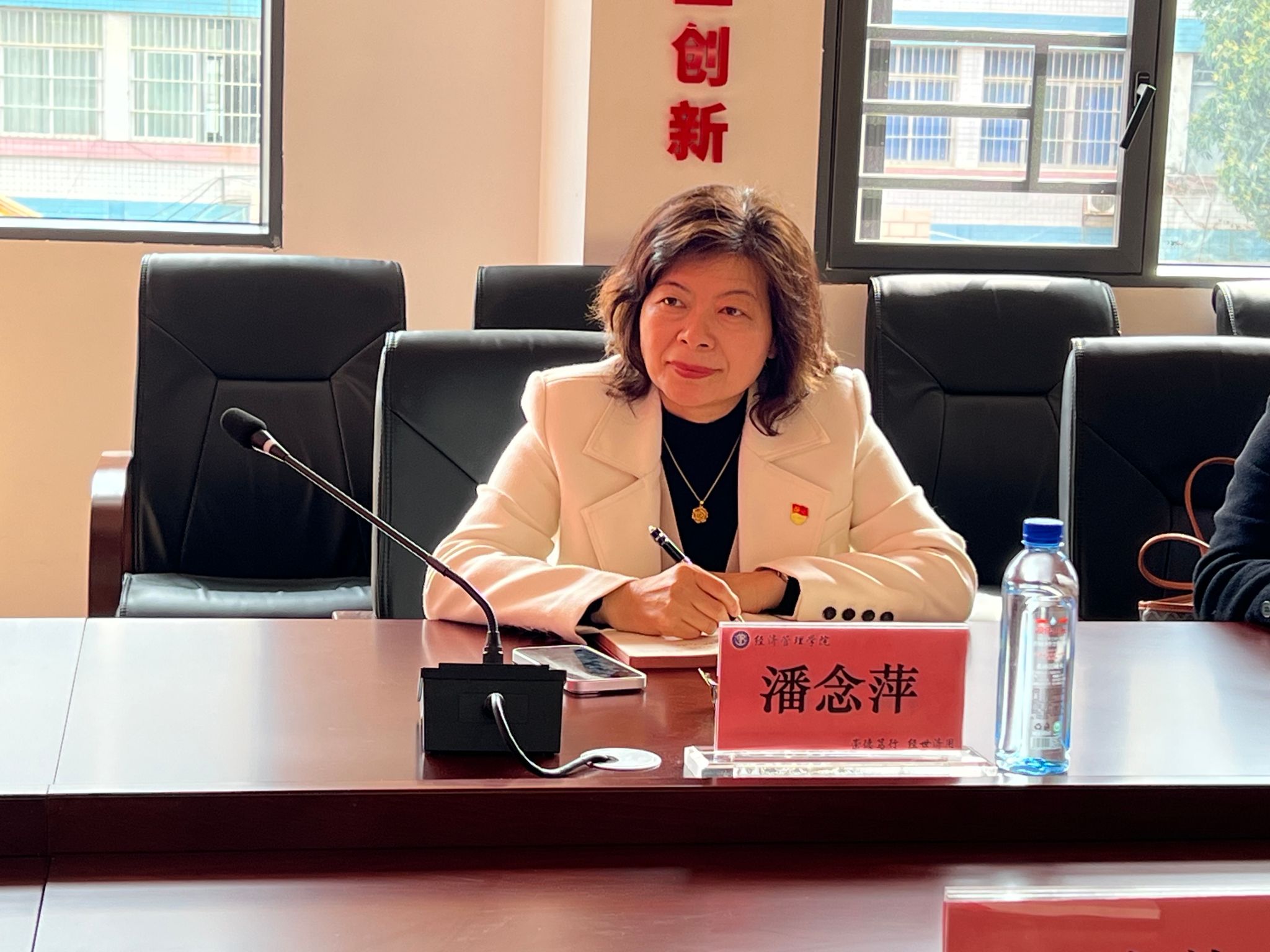 潘念萍同志听取会议内容并讲话