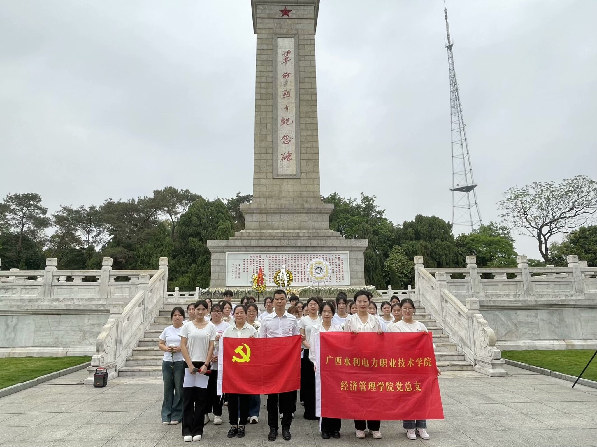 [本网讯]3月28日上午,经济管理学院党总支发挥党建带群团的作用,组织学生党员、学生团员代表、学生青年代表(24级文秘1、2班以及供应链2班学生)前往兴宁区人民公园革命烈士纪念碑,开展了以“红色基因融血脉,经管担当筑未来”为主题的清明节扫墓活动,学院副院长罗成昭及党员教师代表付懿欣、祁拯、刘义蕾、韦秋艺等人出席活动。