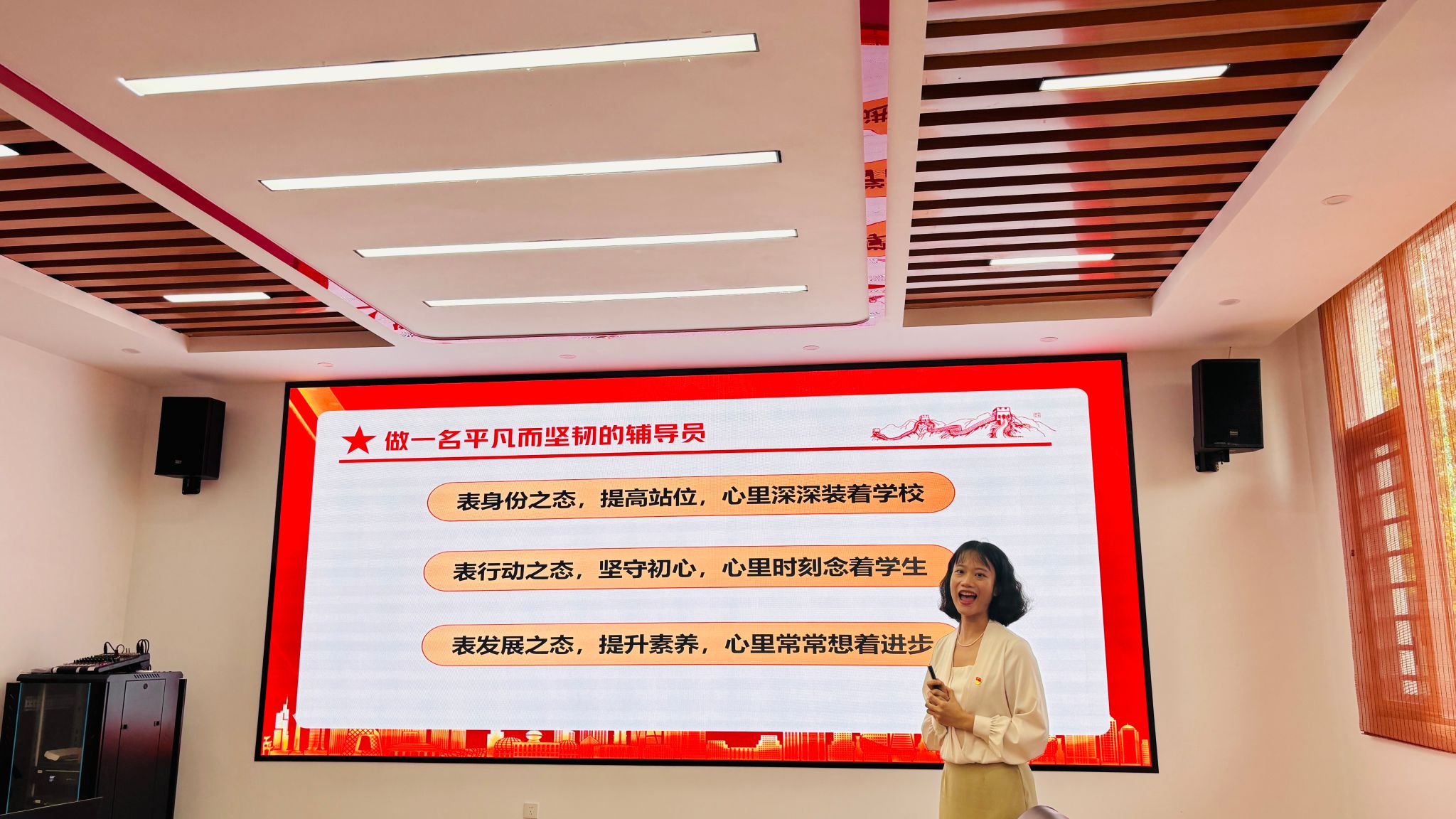 在分享环节,杨晓玲老师以《弘扬“启智润心、弘道报国”教育家精神》为题,回顾了参加双创类大赛的心路历程。她总结了比赛中的经验与教训,结合自身成长,生动诠释了“以匠心守初心”的成长感悟。刘璐老师则围绕《用爱铸就师德,用心关爱学生》,分享了担任辅导员期间以生为本的育人实践,提出“做青年朋友的知心人、青年工作的热心人”的工作理念,引发共鸣。