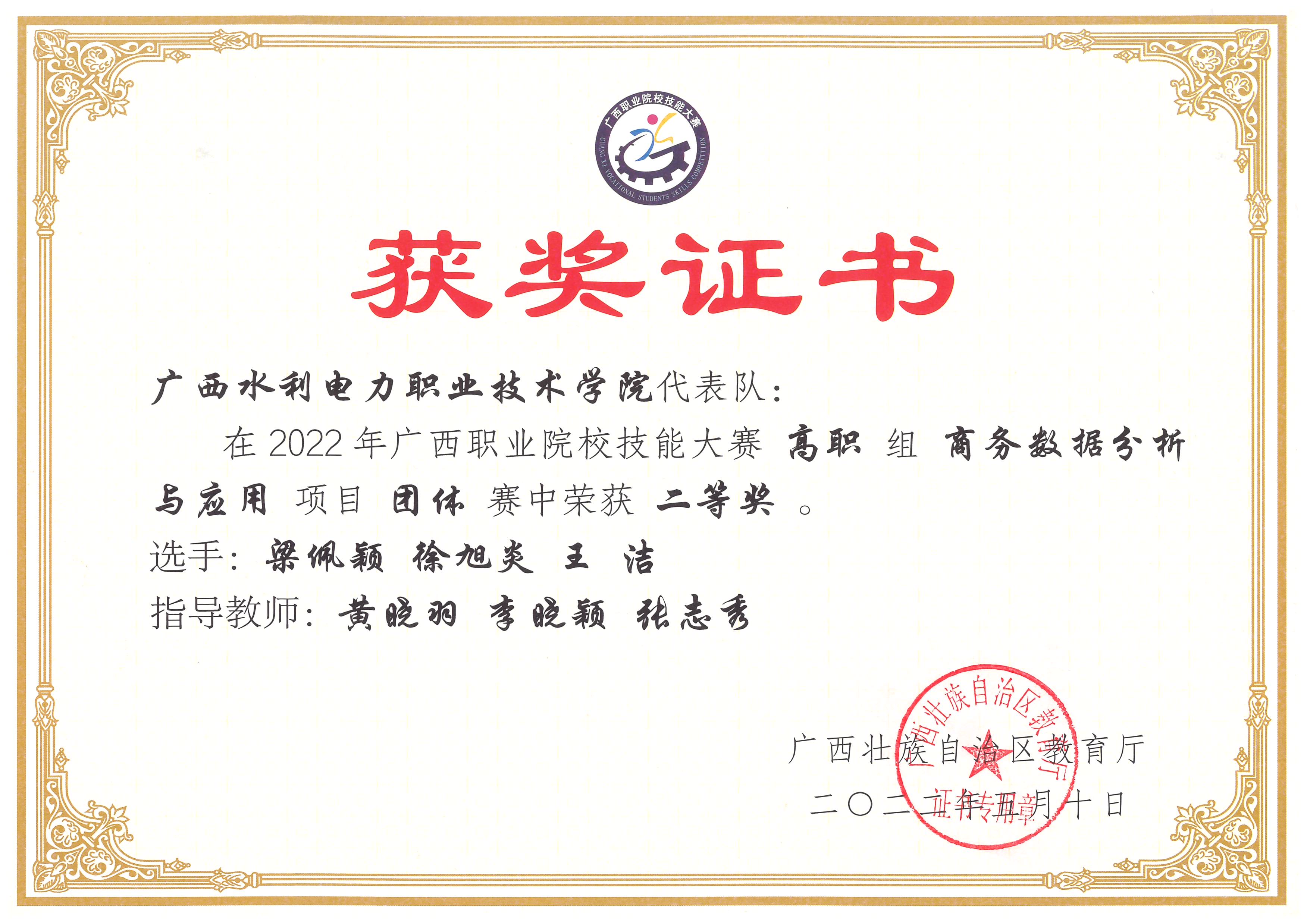 2022年广西职业院校技能大赛高职组商务数据分析与应用项目团体赛二等奖、三等奖