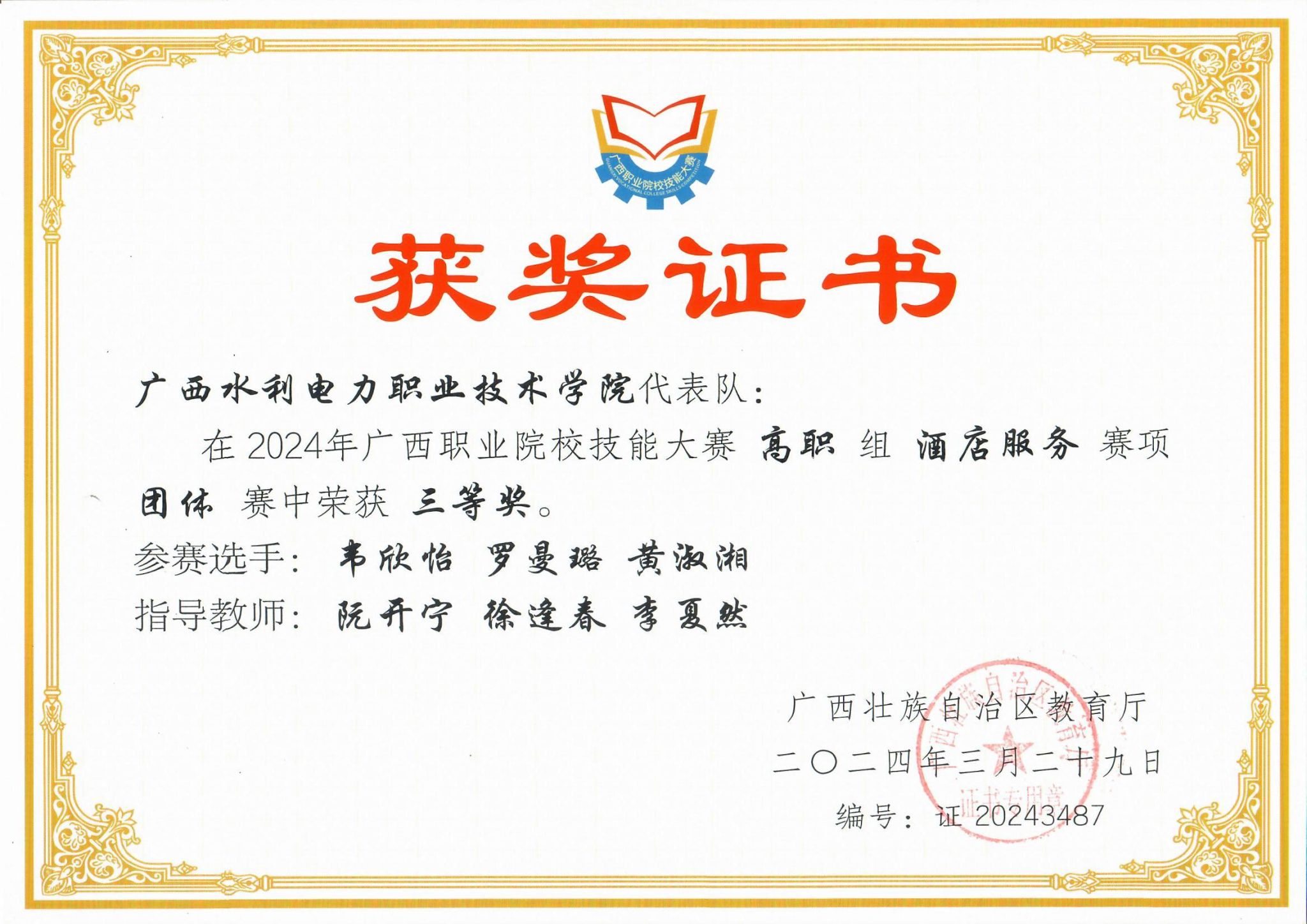 2024年广西职业院校技能大赛“酒店服务”团体赛三等奖