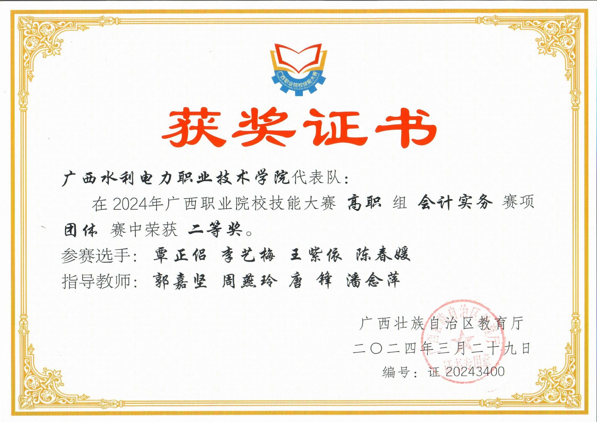 2024年广西职业院校技能大赛“会计实务”团体赛二等奖