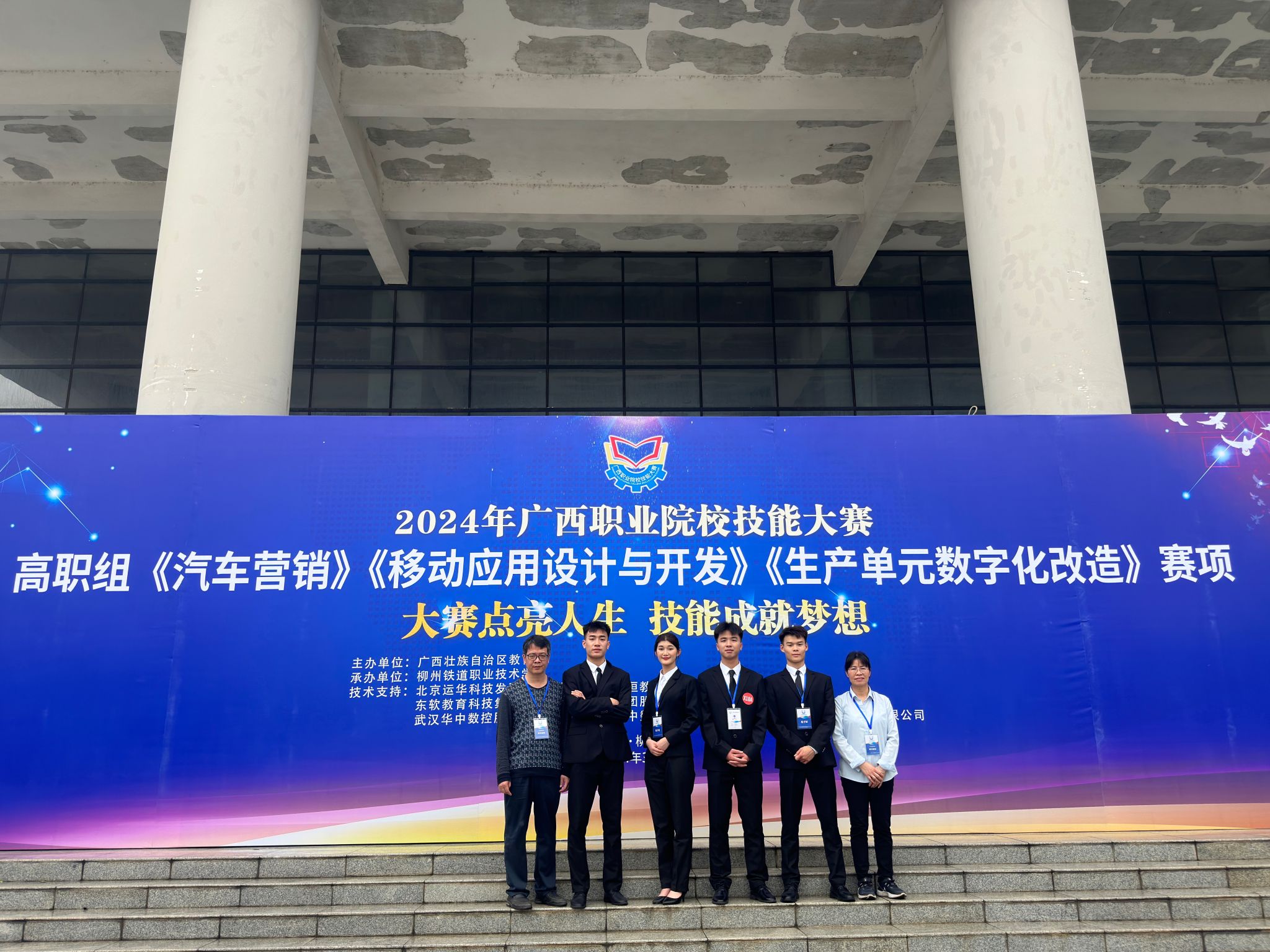 [本网讯]2024年广西职业院校技能大赛高职组《汽车营销》赛项于3月15—17日在广西铁道职业技术学院举行,来自全区22所高职院校42支代表队伍展开了激烈的角逐。交通工程学院22汽车技术服务与营销专业蒋旻宇、蓝世玲和黄文、黄华强共两组同学在指导老师巫尚荣、牟林、林保辉、蒋红梅共同指导下获得三等奖2项。