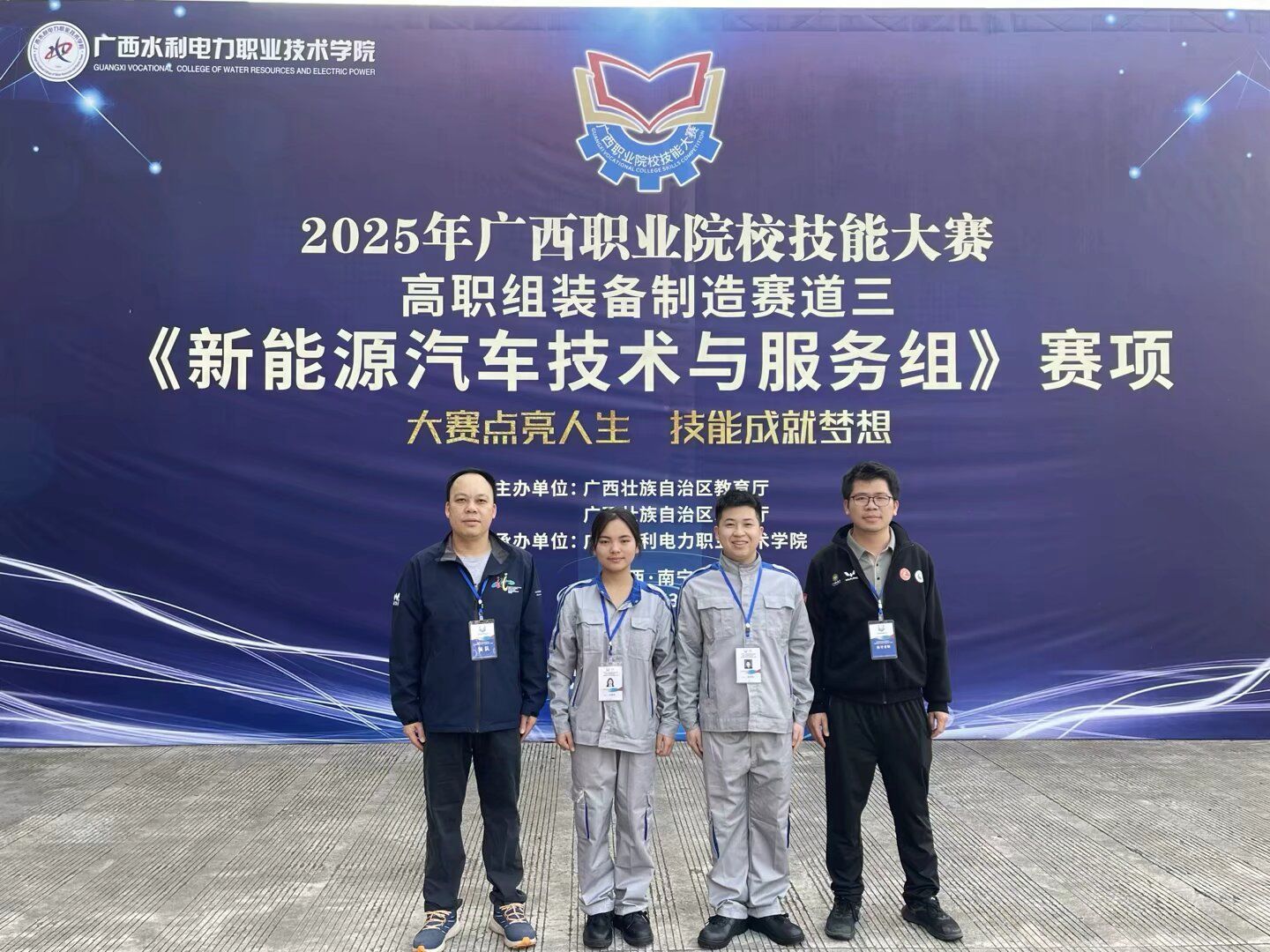 [本网讯]3月2日,2025年广西职业院校技能大赛高职组装备制造赛道三《新能源汽车技术与服务组》赛项圆满落幕。交通工程学院两支代表队从24所高校、42支劲旅中强势突围,勇夺两项金奖,实现该赛项蝉联2年夺冠的辉煌战绩。