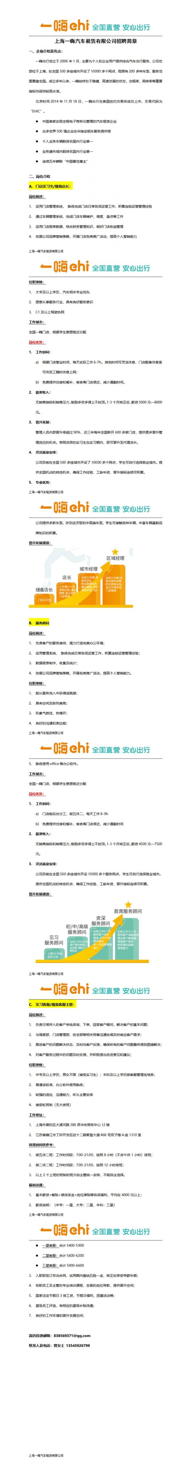 2023年上海一嗨汽车租赁有限公司招聘简章
