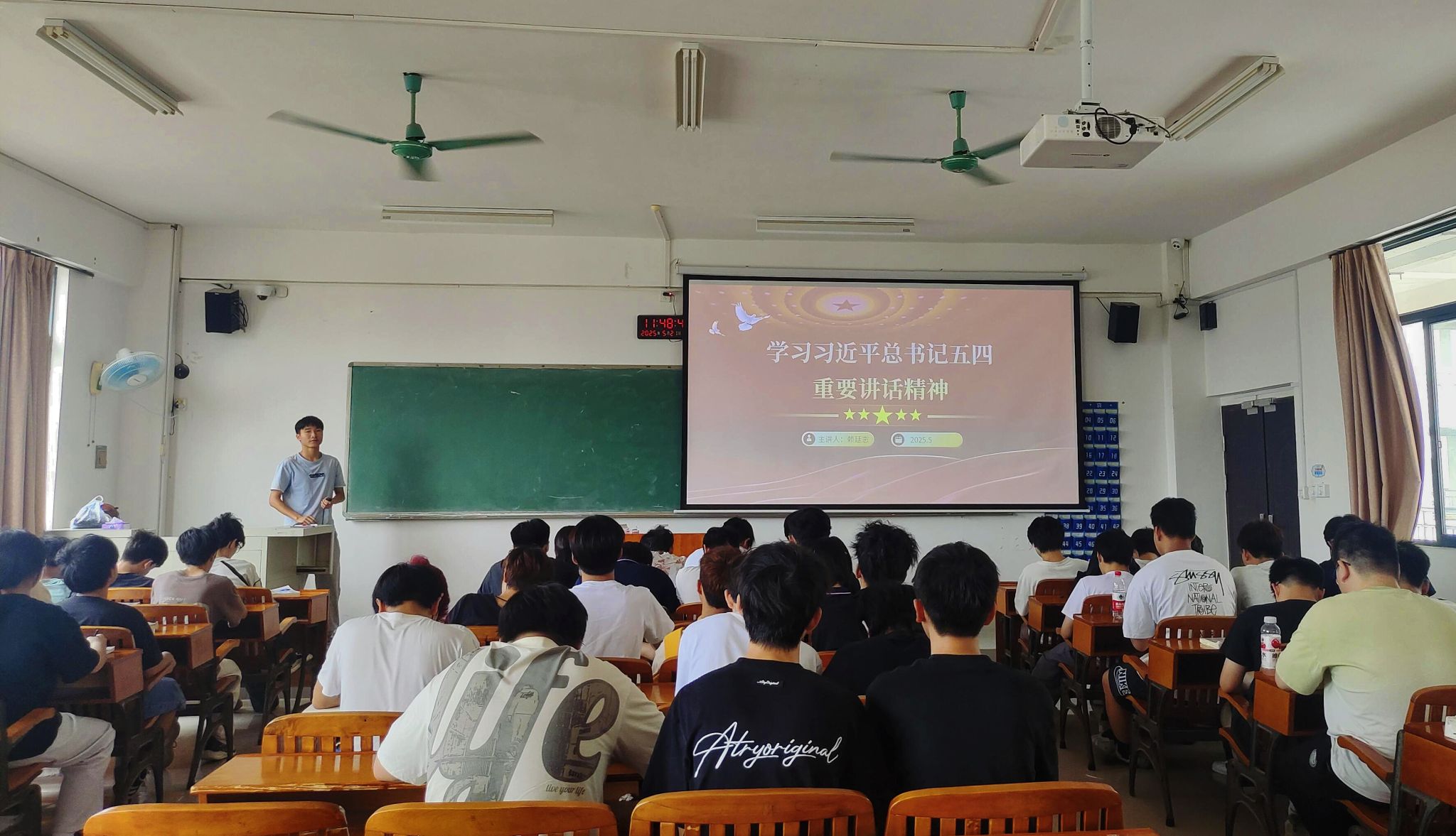 活动中,团支书带领同学们共同学习《习近平总书记给谢依特小学戍边支教西部计划志愿者服务队队员回信》,从习近平总书记的回信中汲取奋进力量,激励同学们牢记习近平总书记的殷殷嘱托,坚定理想信念。通过相关视频短片,生动再现当时青年学生参与五四运动的激情燃烧场景,让团员青年们对五四运动的爆发背景、发展历程有了更为直观且深刻的认识。在“新时代青年的使命与选择”主题研讨环节,同学们围绕“个人理想与国家需求如何同频共振”展开热烈讨论,大家纷纷表示,要练就过硬本领,发扬奋斗精神,以更加饱满的热情和坚定的信念躬身力行,将理想信念转化为服务社会的实际行动。
