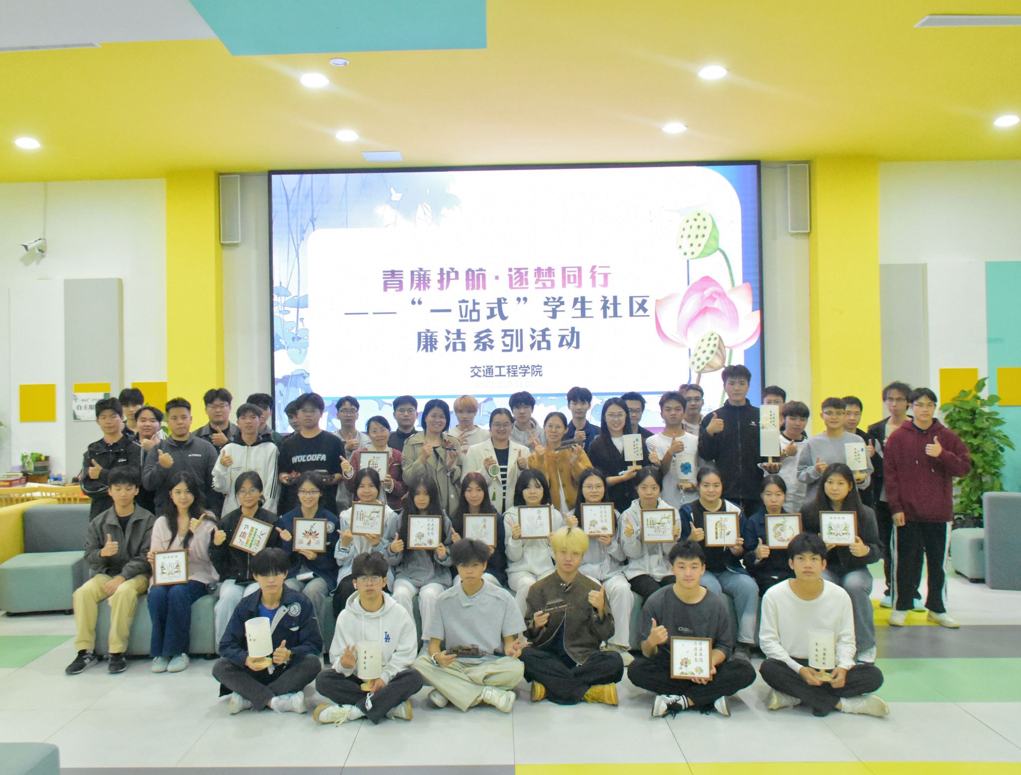 [本网讯]为进一步推进廉洁文化建设和师生廉洁教育工作,营造风清气正的校园氛围,11月10日,交通工程学院在里建校区和园“一站式”学生社区举办了“青廉护航·逐梦同行”廉洁系列活动。学校教务处副处长赖永明、交通工程学院院长梁小流莅临指导。