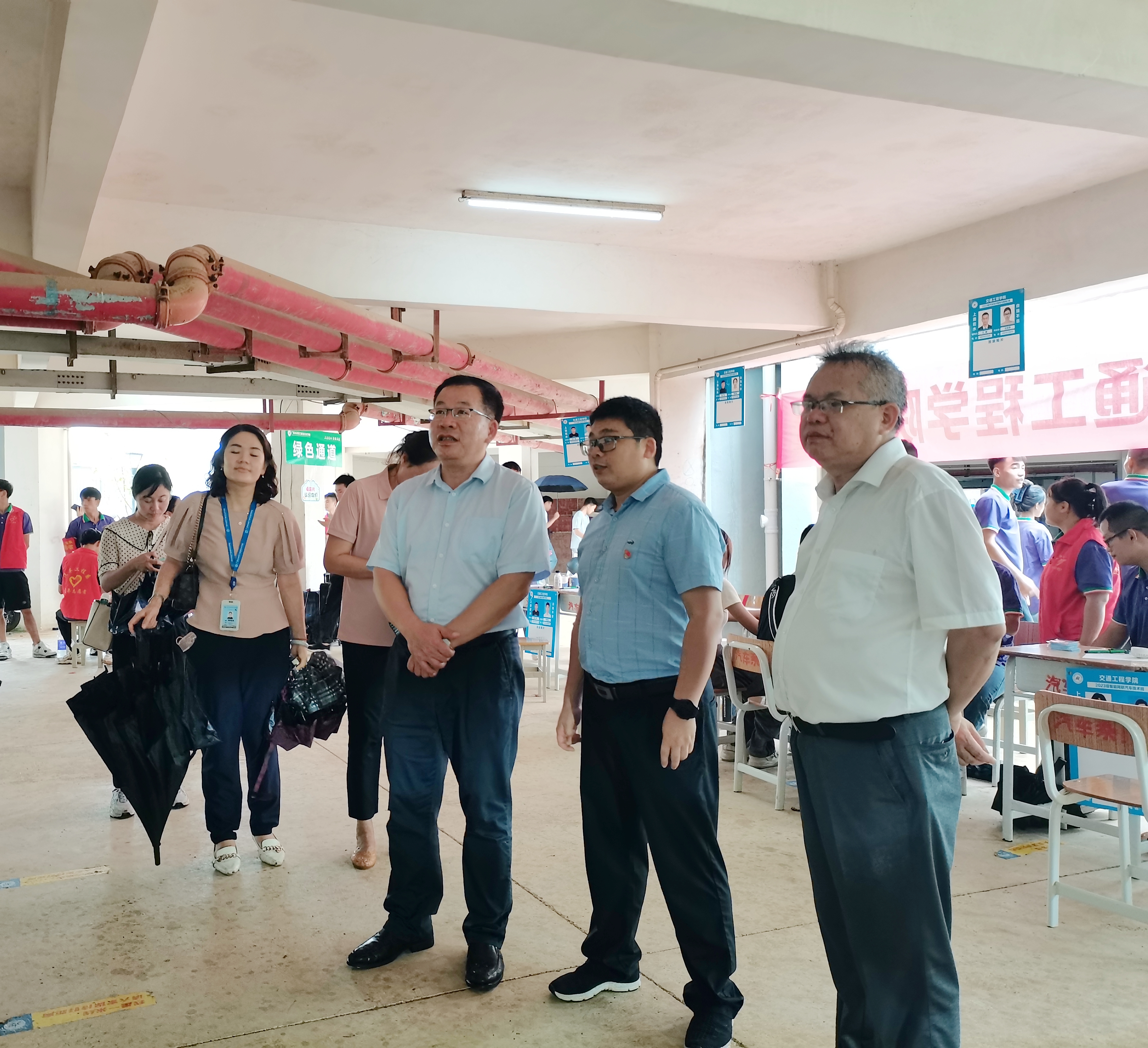 清晨的曙光微微亮起,紧张有序的迎新工作正式拉开序幕。校门口引导、行李搬运存放、绿色通道办理、人脸识别、入学手续办理……全院迎新工作人员热情引领,耐心解答,倾心付出,志愿者为新生和家长提供热情周到的“一对一”便利服务,全方位传递了对新生的关心关爱,让他们切身感受到来自学校的温暖。学校领导高度重视2023级新生报到接待工作,学校校长李林、副校长蒋文沛、纪委书记邓文勇在学院领导班子陪同下深入新生报到现场,走访迎新点,亲切慰问迎新工作人员,并详细了解新生报到工作开展情况。