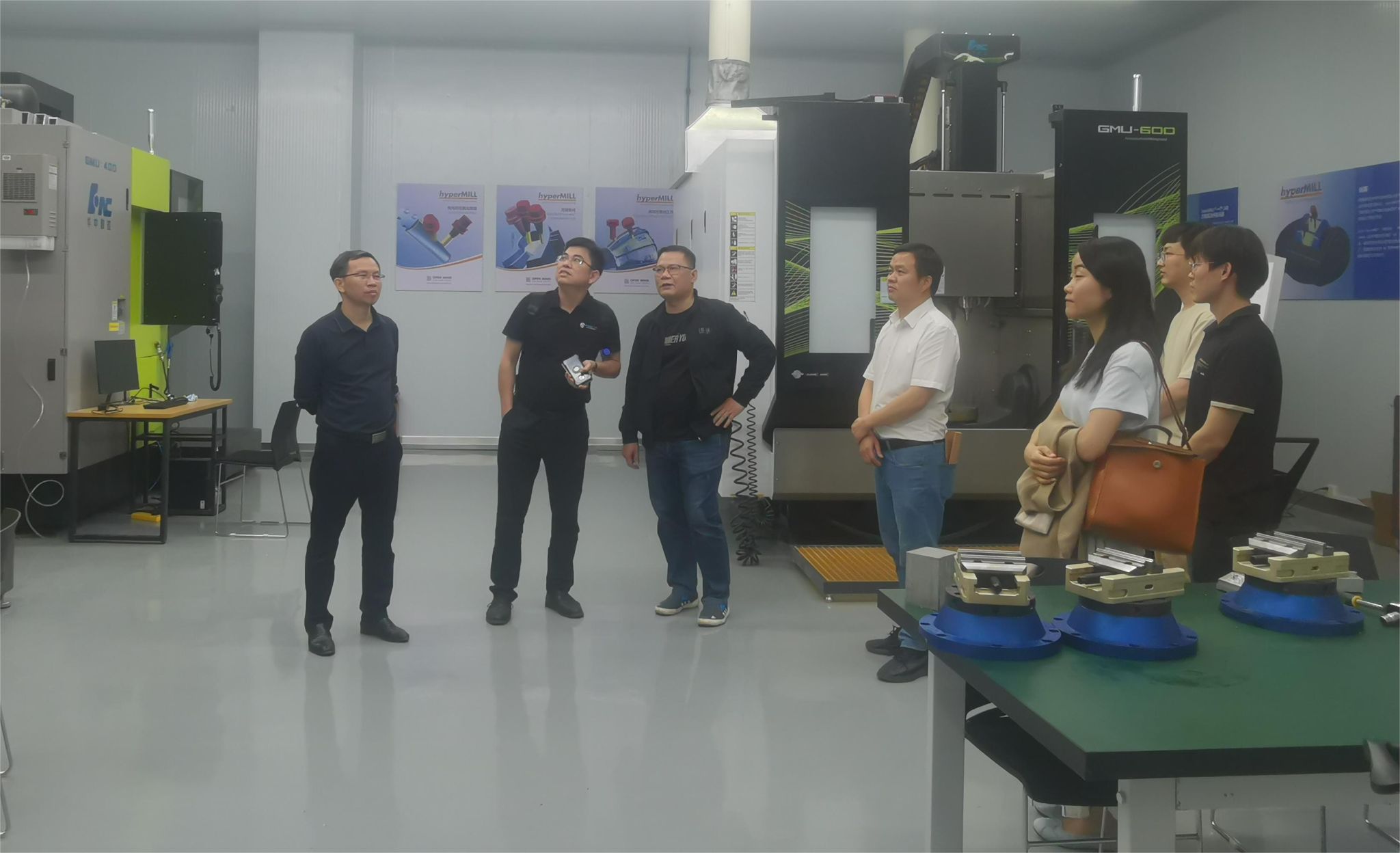 南宁市程津隆韦业书总经理(左二)参观五轴加工中心实训室