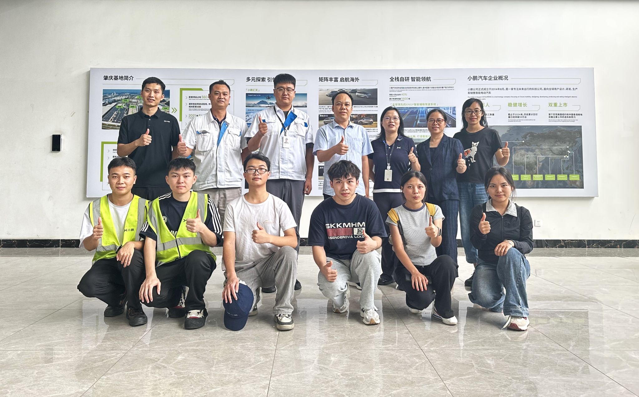 9月16日,团队首站到访肇庆小鹏新能源投资有限公司。在人力资源主管余家栩陪同下,学院一行参观了小鹏汽车智能网联科技产业园。随后的座谈会上,厂长陈淼介绍了企业生产经营与技术成果,人力资源高级经理刘小云详细介绍了pp电子学生实习表现及企业人才需求。陈小长对企业接待表示感谢,并就人才培养与校企合作进行交流;他还与实习学生亲切交流,了解其工作与生活情况,鼓励大家把握机会、提升实践能力。学生表示,实习不仅提升了专业技能,也增强了对行业和就业的信心。