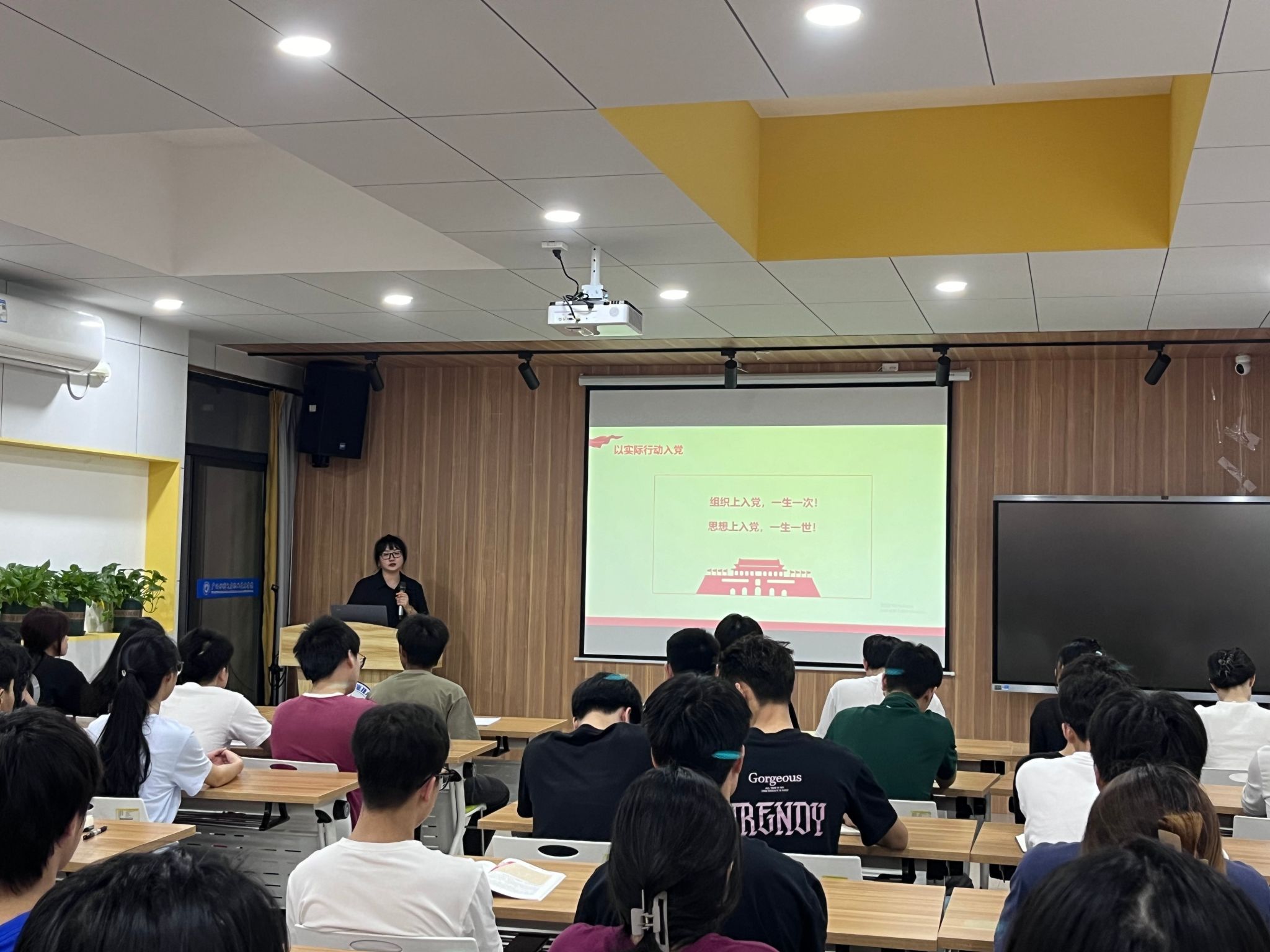 本次党课主要围绕对党的认识以及党员的权利和义务、树立正确的入党动机、如何以实际行动争取早日入党三个方面展开讲述。梁展榕老师要求积极分子们不仅要在组织上想入党,更要在思想上入党,端正入党动机,坚持全心全意为人民服务的初心使命,并从“三个代表”重要思想到“科学发展观”、再到习近平新时代中国特色社会主义思想等党的创新理论成果,阐述共产党人的初心使命,激励入党积极分子要努力学习,主动接受考验,不断塑造提升自己。